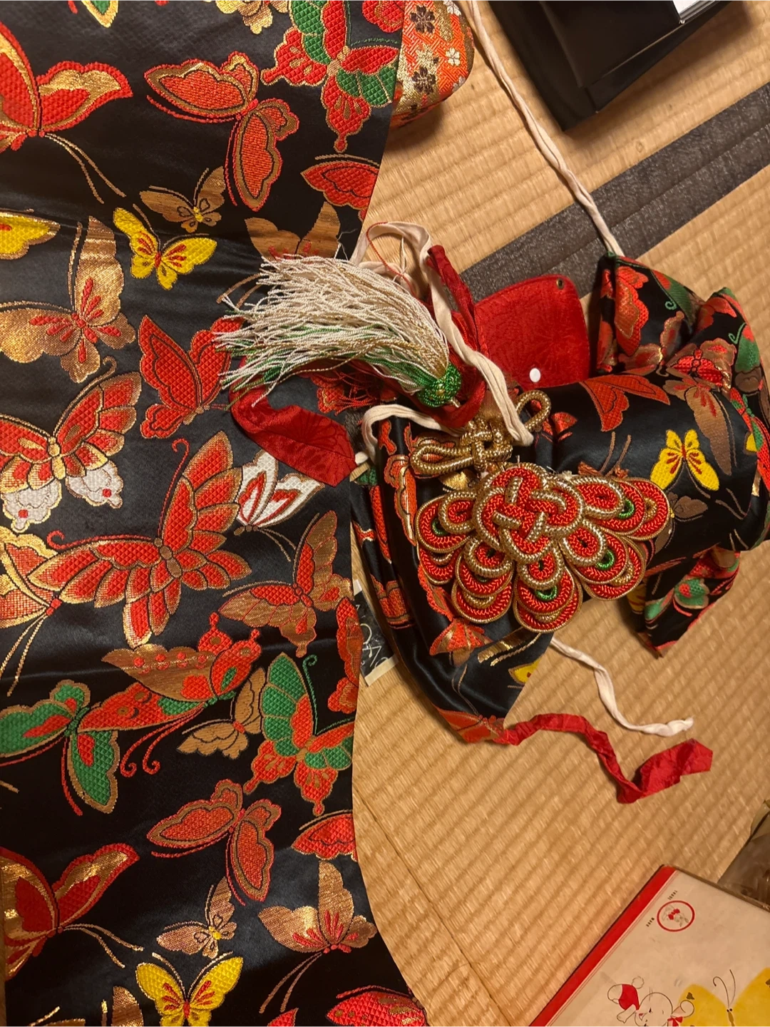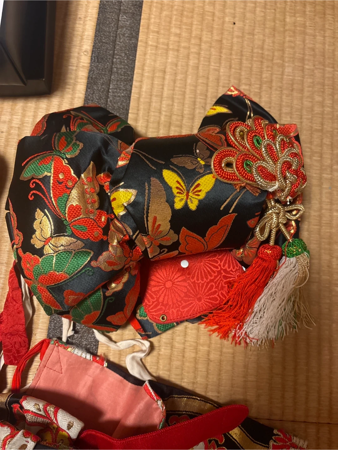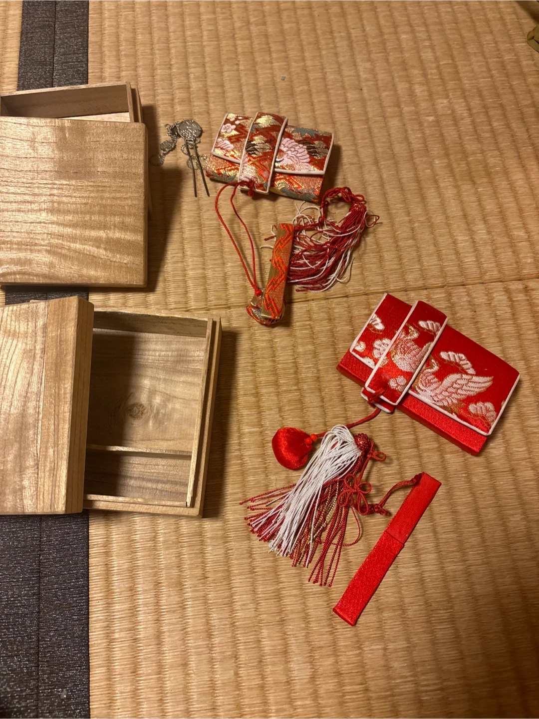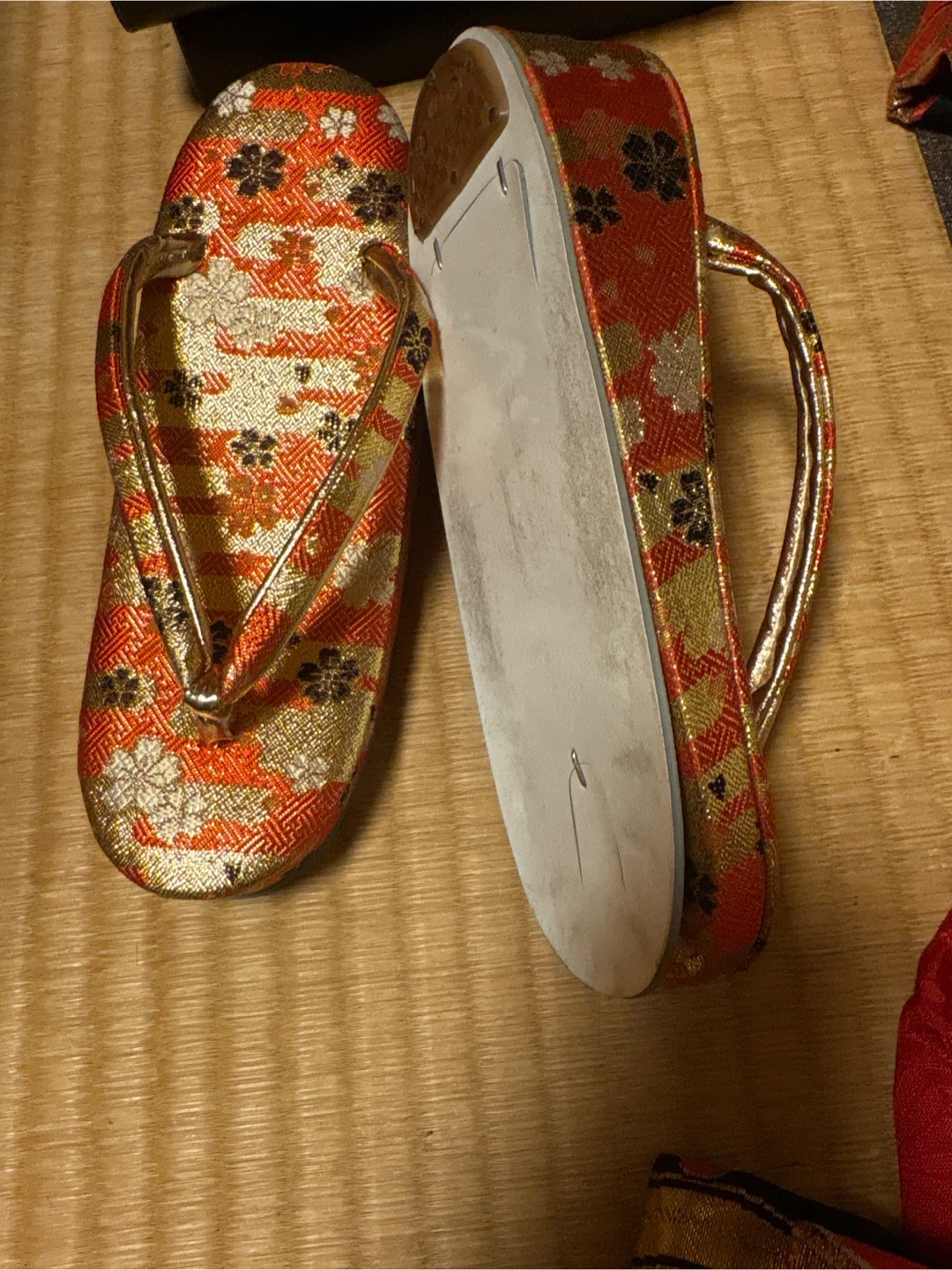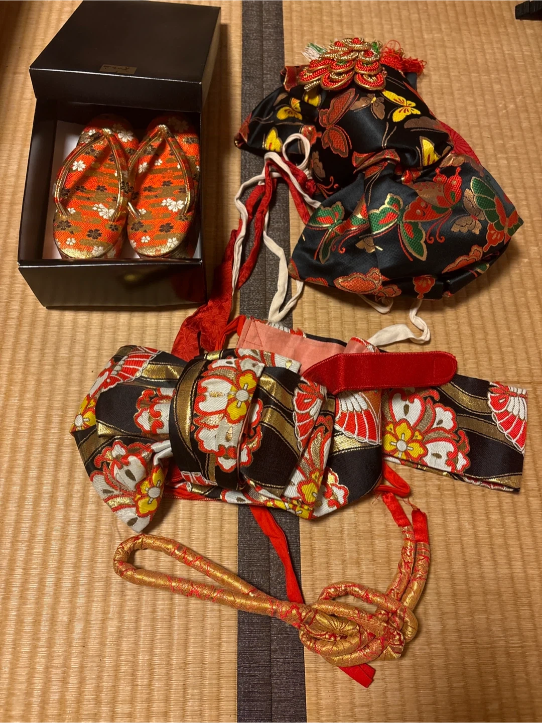 和装小物セットです。 ・草履、帯、筥迫、扇子など 最後のお写真の小物は1つおつけ致します。 別写真の髪飾りとご購入で髪飾りを500円でいかがでしょうか。 中古品であることをご了承ください。
