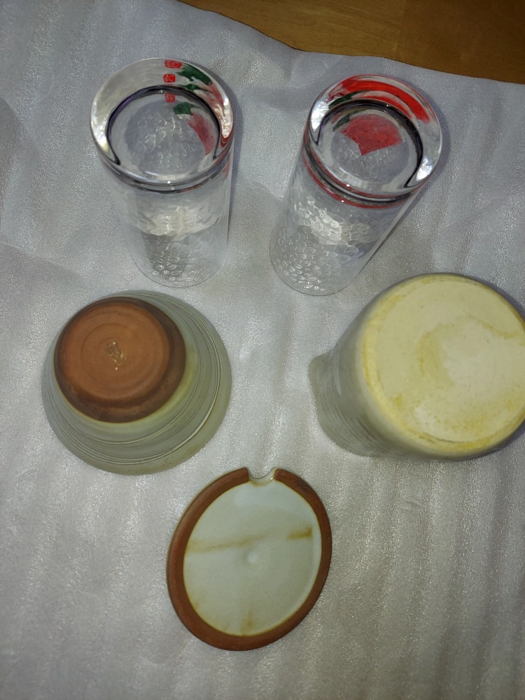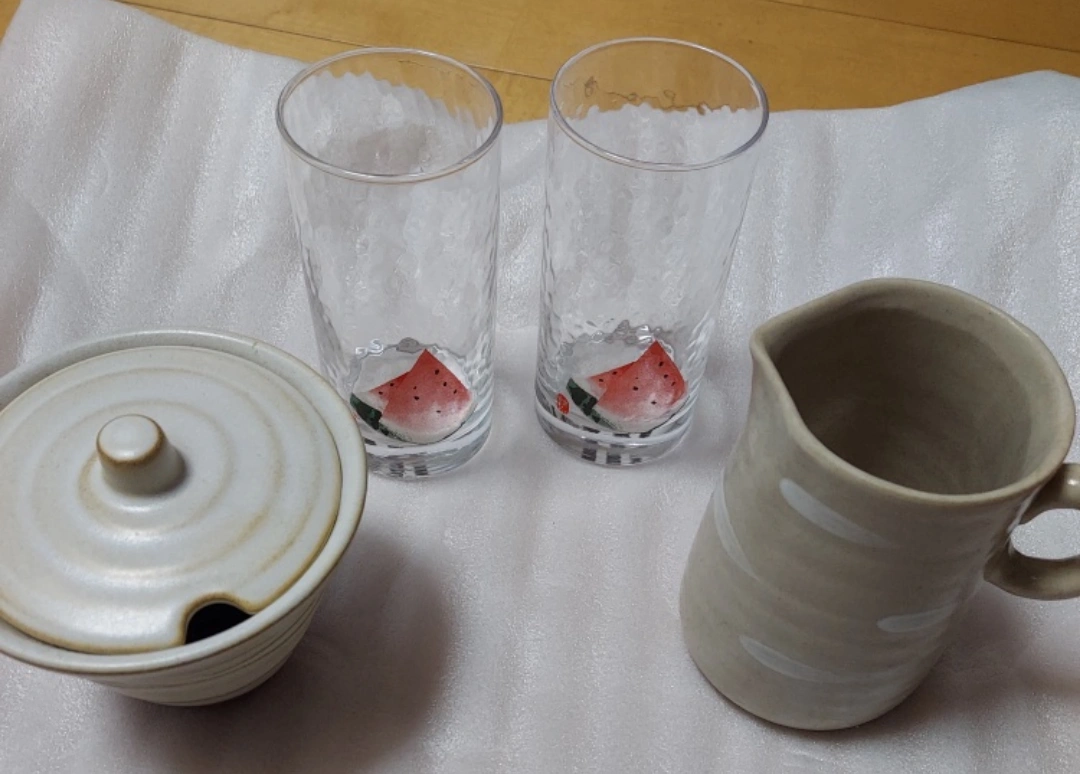 使わずしまったままでしたので出品いたします。 スイカ柄 ミニポット? 蓋付き入れ物 焼き物