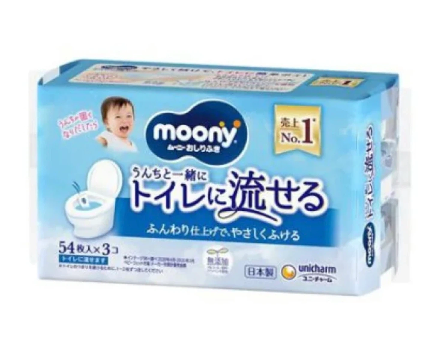 #大人も多岐に活用できます! ムーニー トイレに流せる おしりふき 5パック 《54枚×3個入》