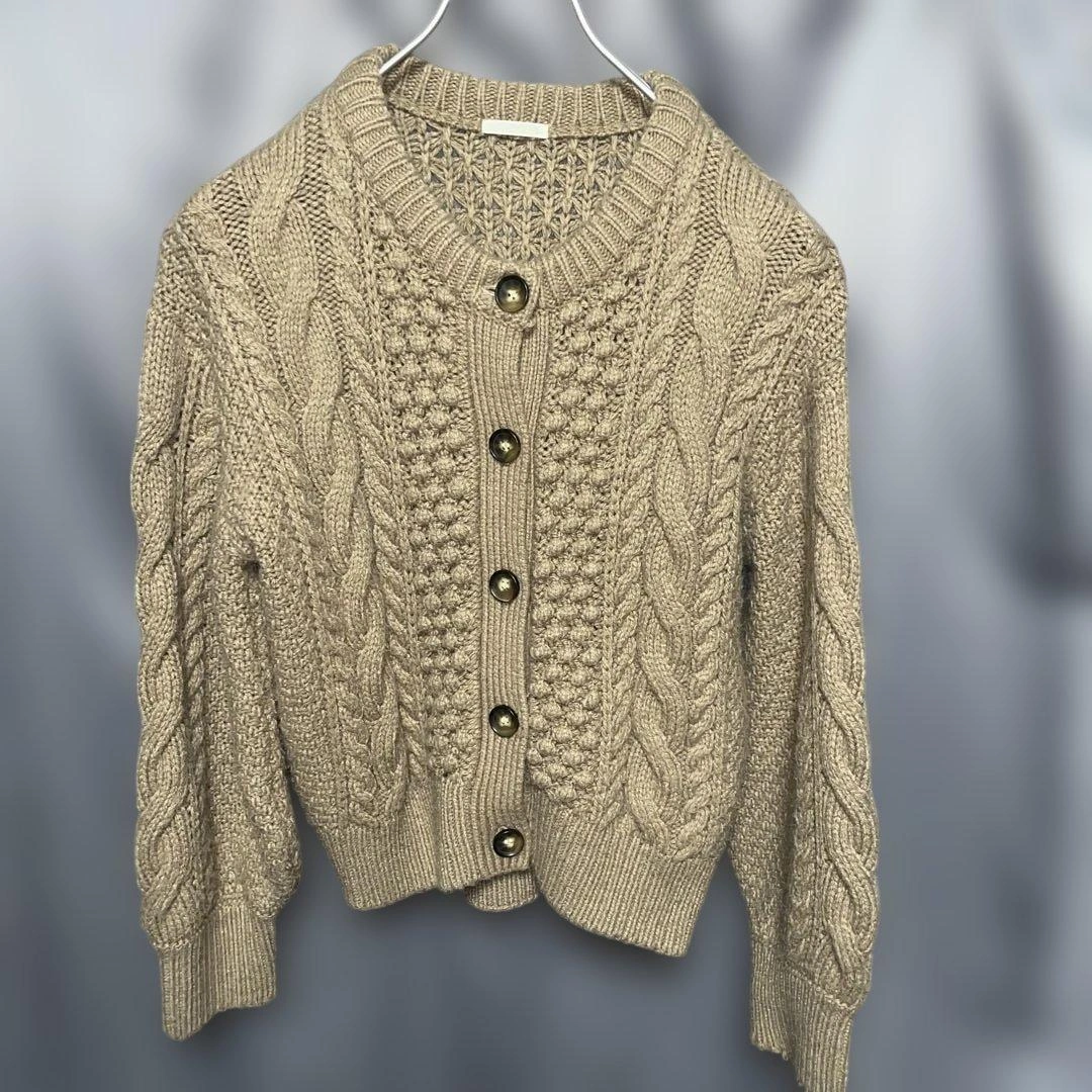 GU ケーブル編みデザインのベージュカーディガンです。Sサイズ、黒ボタン付き。 色: ベージュ サイズ: S ボタンの色: 黒 デザイン: ケーブル編み ご覧いただきありがとうございした。 ご希望の方はお気軽にご連絡ください。