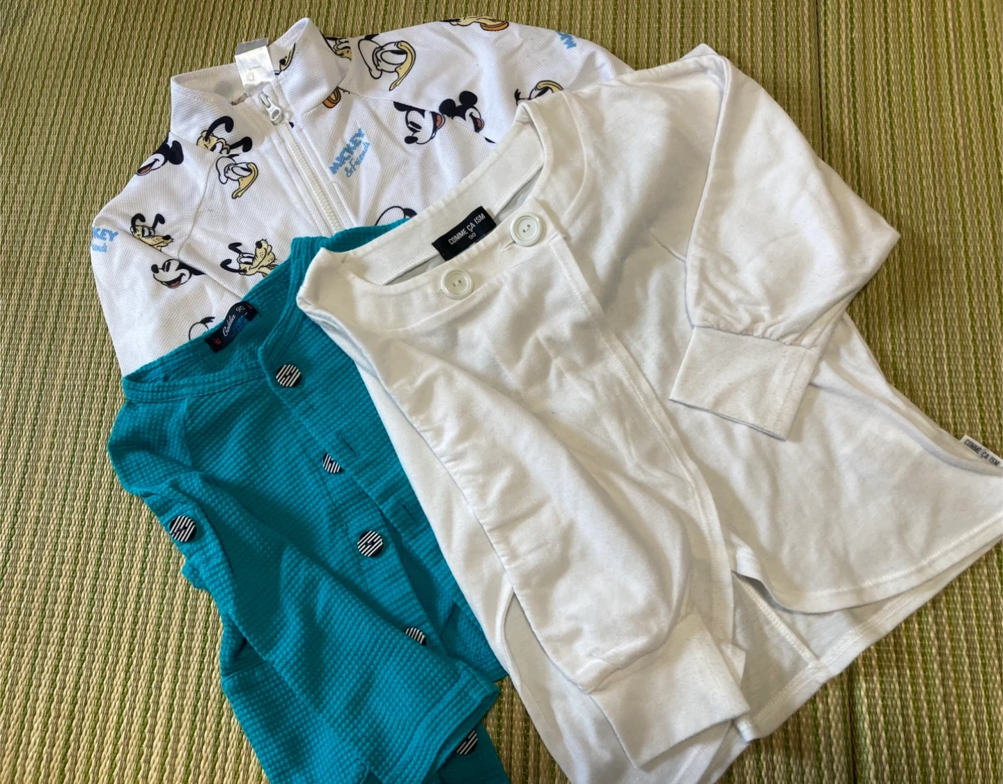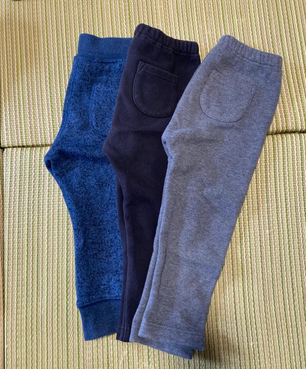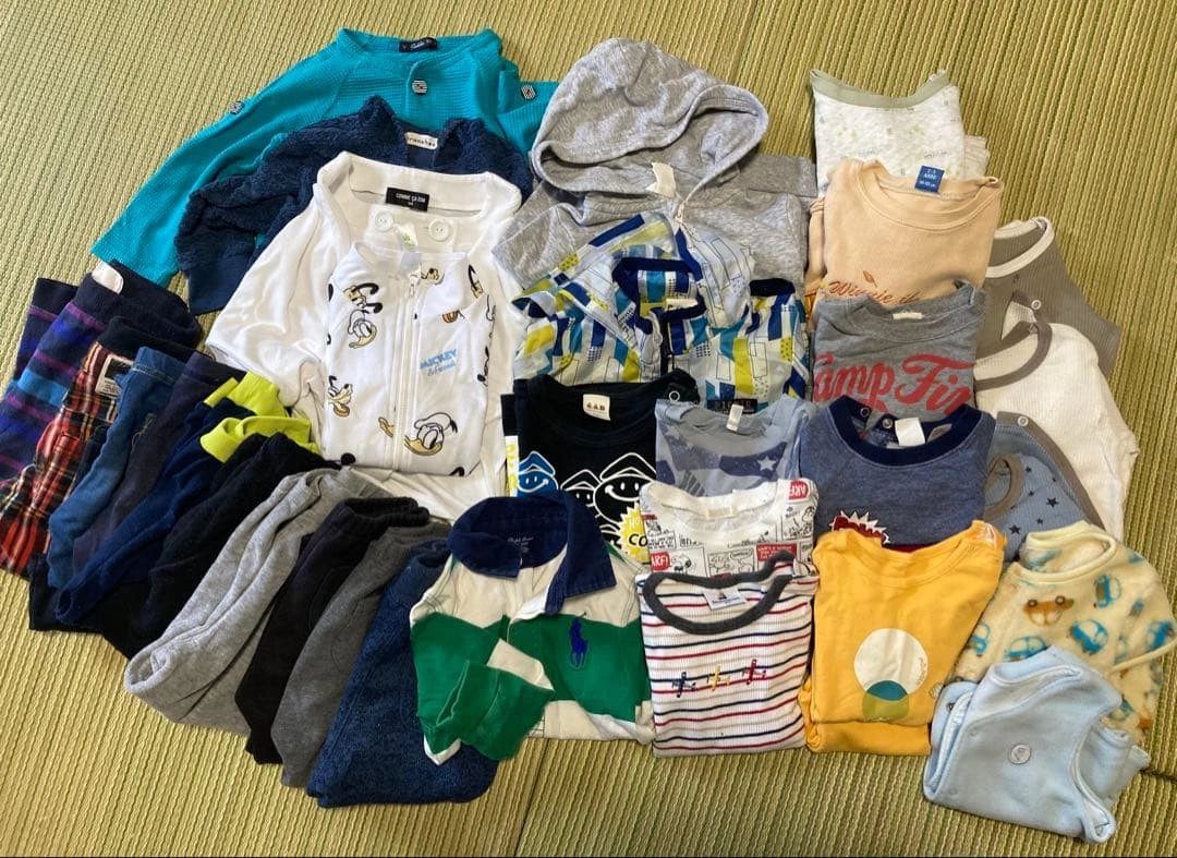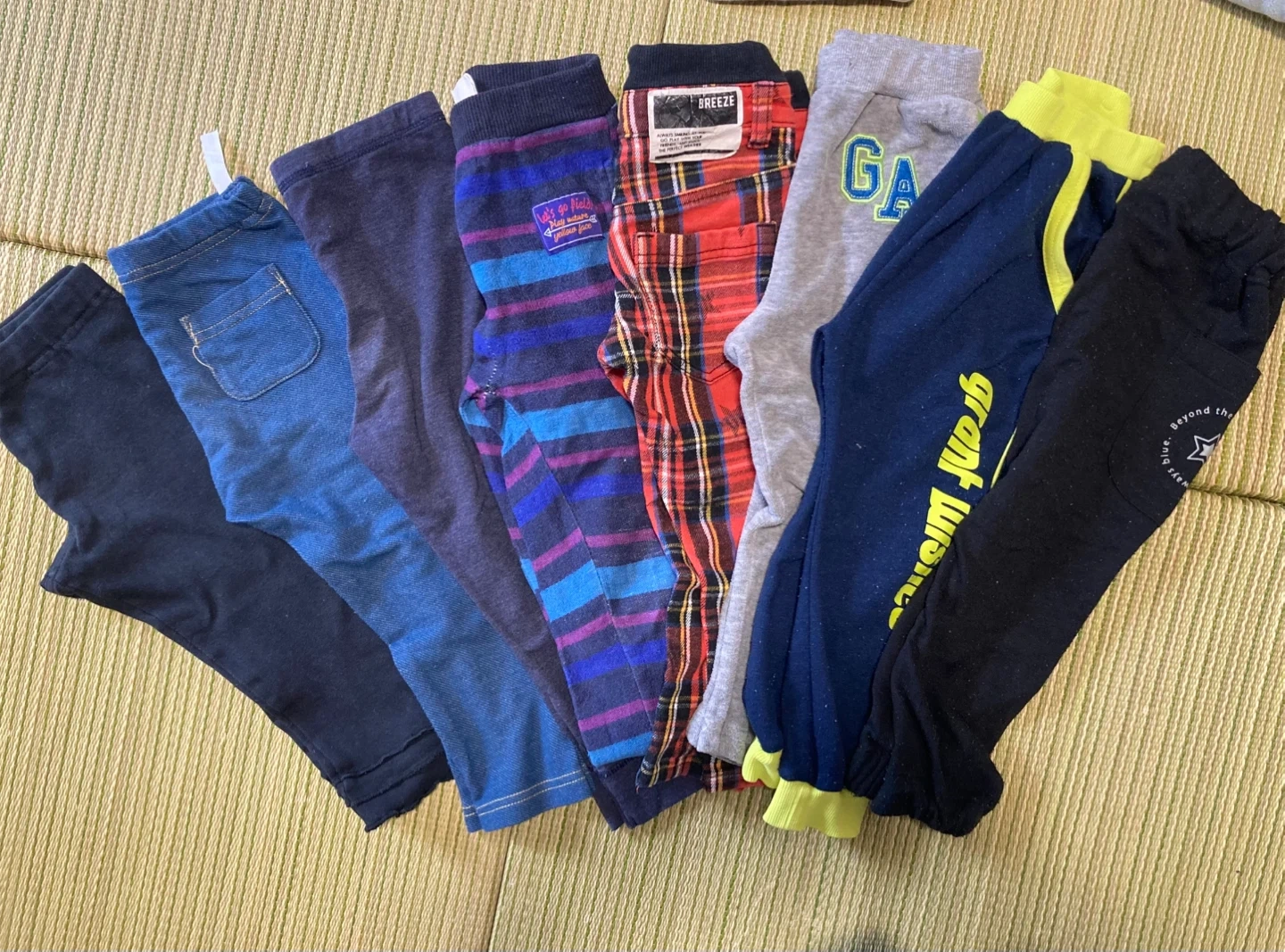90サイズがメインですが、大きめ80や小さめ95も入っています。 全て同じ時期に着たものです。 コムサやミキハウス(picnic)、ブランシェス、ユニクロ、ブリーズ、等も一部入っています。 大きな汚れや破れなどはありませんが、子供が着用したもので毛羽立ちや毛玉、少し引っかかりの糸が出ている箇所などあります。 お名前シールは剥がし、タグの記名はそのままにしています。 一部ズボンのポケットが少しほつれていますが、そのままのものがあります。(写真3枚目左から2本目) 裏起毛のレギンス、スウェット、長ズボン、薄手のカーディガン、パーカー付きウインドブレーカー、長袖Tシャツ、トレーナー、ベスト、パジャマ、長袖ロンパースなど合計29点になります。 以上の点、ご了承のほどよろしくお願いいたします。