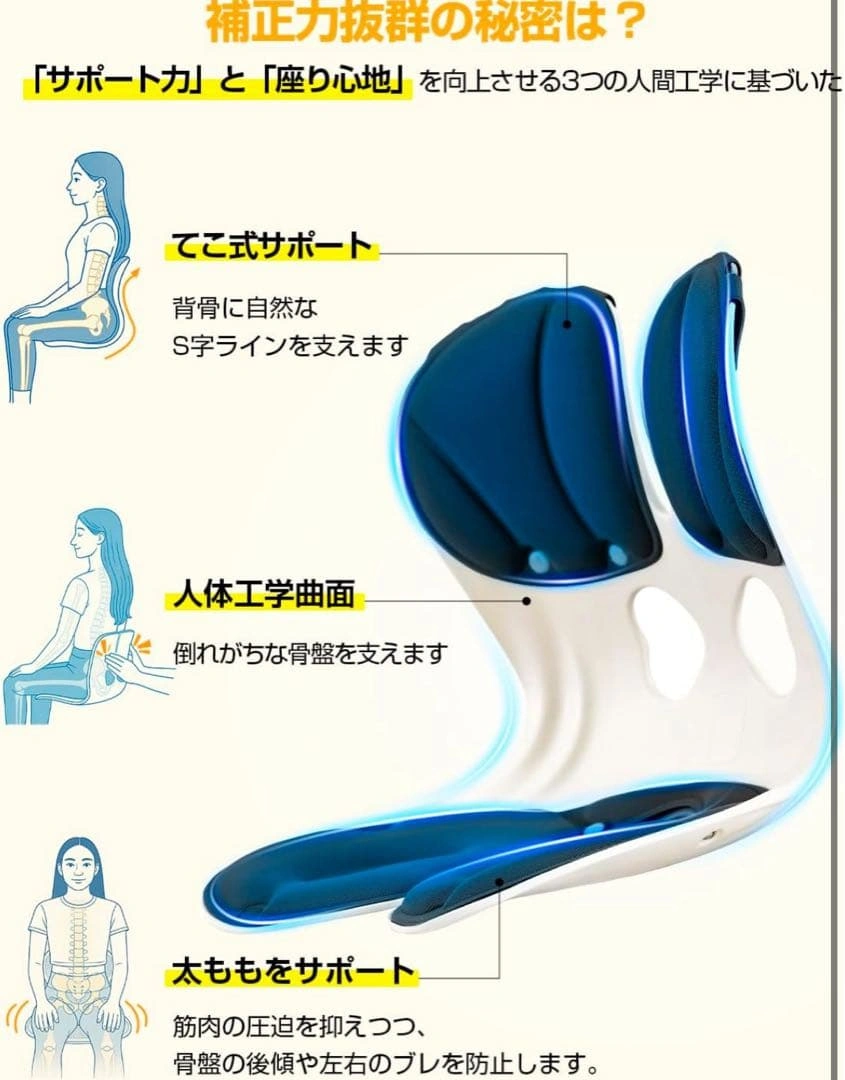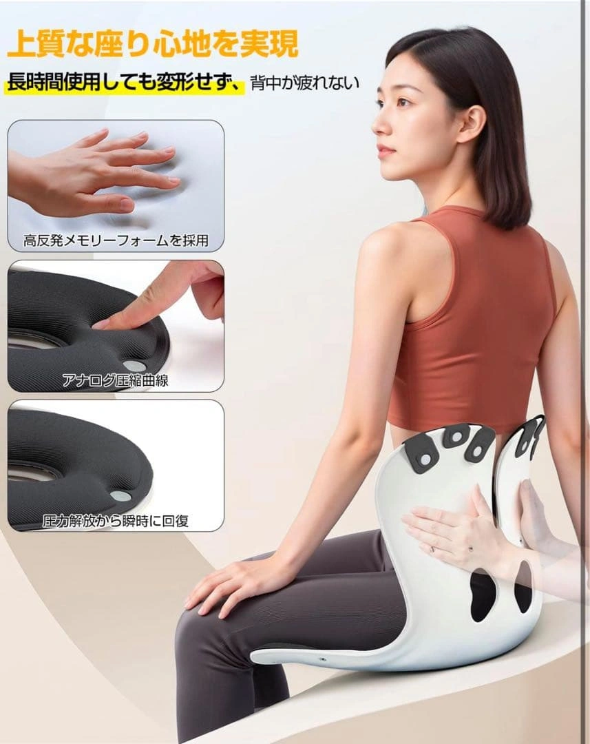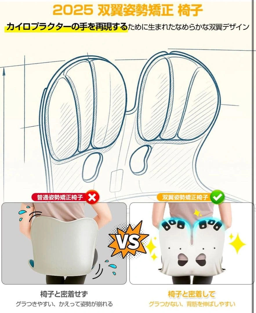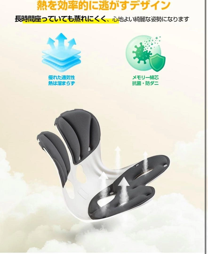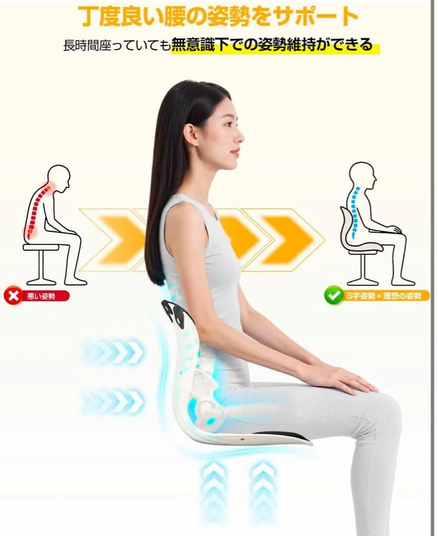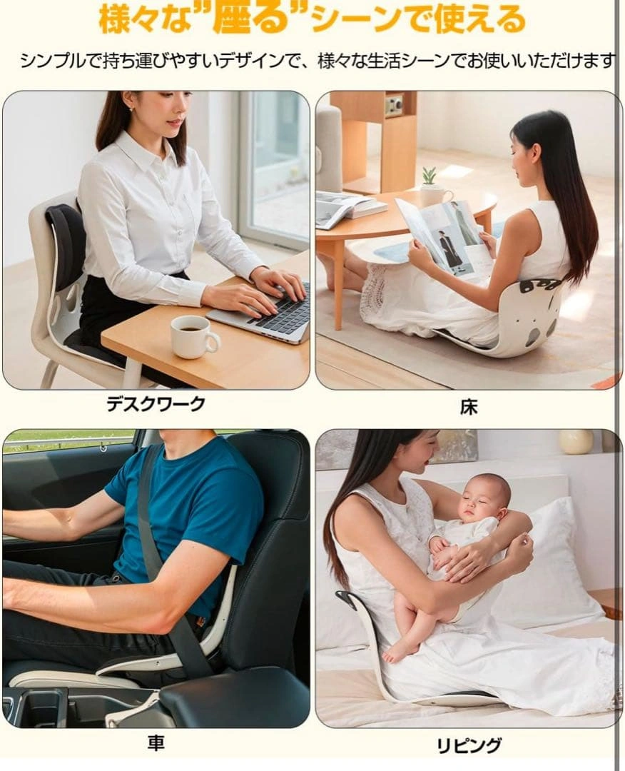 数ある中からご覧頂きありがとうございます(^○^) 【座るだけで理想の姿勢に!姿勢をサポートする革命的な矯正チェア】 日本人の体型と座り方の癖を徹底的に研究し、専門家チームが5年の歳月をかけて開発した姿勢矯正チェアです。この骨盤矯正 椅子に座るだけで、まるでプロのインストラクターに指導されているかのように、瞬時に正しい座り方に調整され、背筋がピンと伸び、脊椎の緊張を解放します。 【進化した姿勢矯正 椅子!快適さと清潔感を両立した2025年最新モデル】 ①【鳥の翼のような背もたれデザイン】従来モデルでは「もう少し背中を支えてほしい」「硬く感じる」といった声が寄せられていました。そこで、2025年モデルは背もたれのデザインを鳥の翼のような形に変更しました。このデザインは体によりフィットし、背中をしっかりとサポート。長時間座っても疲れにくく、正しい姿勢を無理なく維持できます。 ②【取り外し可能なカバー】これまでのモデルでは汚れた際のお手入れが少し手間でしたが、2025年モデルではカバーが取り外し可能になり、簡単に洗える仕様へと進化しました。 【一度座ったら離れられない!魔法のような姿勢矯正 椅子】 「座り心地の良さ」と「正しい姿勢」を両立させることを目指して開発されました。何千回ものテストを重ね、さまざまな体型や座り方にフィットする絶妙な硬さを実現。長時間座っても疲れにくく、自然と背筋が伸び、腰への負担をしっかりと軽減します。高反発クッションが体圧を均等に分散し、柔らかく包み込むような快適な座り心地を提供。通気性にも優れており、蒸れにくく、季節を問わず快適に使用できます。デスクワーク・在宅勤務・学習・読書・長時間の運転など、あらゆるシーンで大活躍します。正しい姿勢を自然に促し、身体のゆがみを防ぎながら、心も体もリラックスできます。 【軽量&コンパクトでどこでも使える!】 たった960gの超軽量設計で、女性やご高齢の方にとって理想的な選択肢となり、軽々と持ち上げ、移動し、自在に操作できます。 40×30×35cmの適度なサイズで、座椅子・床・ソファ・オフィスチェアなど幅広い環境に対応します。