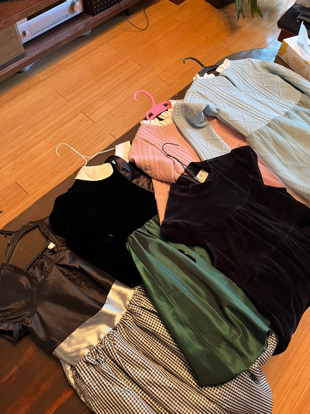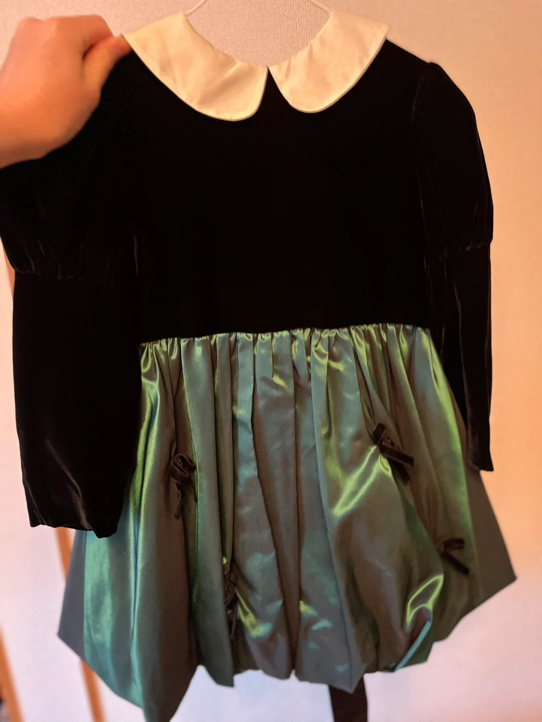 子供服のワンピースのまとめ売りです。そこまでふりふりが好きではない娘なので、どれもシックな感じです。 お正月におめかししたい、春に入学式や発表会などを控えた姉妹の方などに特におすすめです。 ・黒のベロアワンピース(組曲)に「120〜130」のタグあり。サイドにリボンベルトつき。 ・ピンクニットワンピースに「enchante petit 130」のタグあり。水色は140 ・黒と白のギンガムチェックのワンピースあり(130くらい) ・グリーンと黒のは娘の入学式に着ました(120から130) 中古品であることをご了承ください。どうぞよろしくお願いします。
