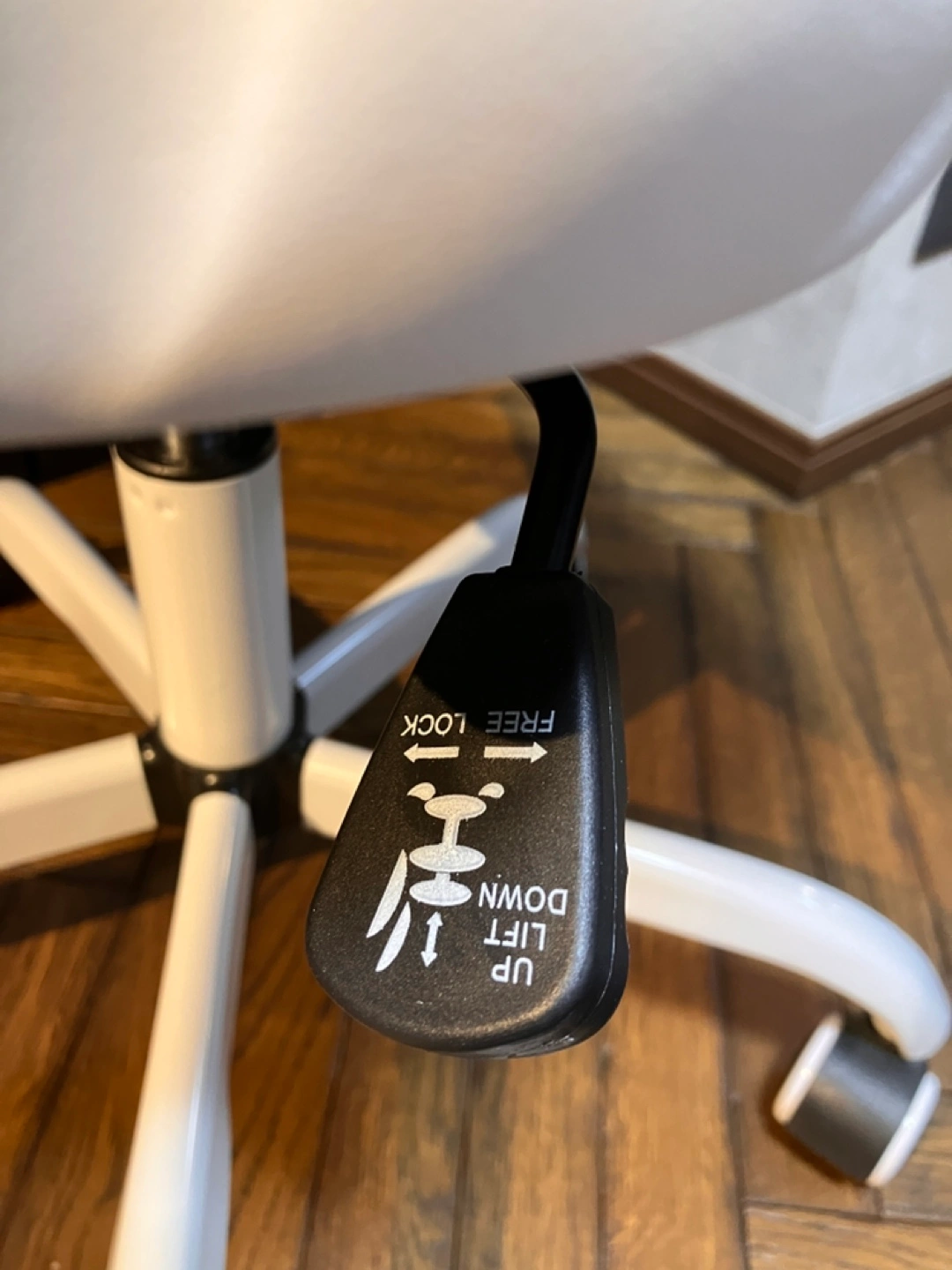 2年前にメルカリで購入したチェアーです。 高さの調整ができますが、たまに下がる場合があります。普段使用には問題ありません。 ご不明点等ございましたらご連絡ください。