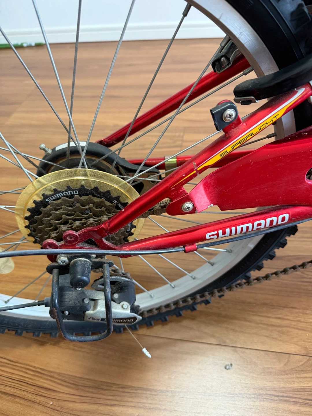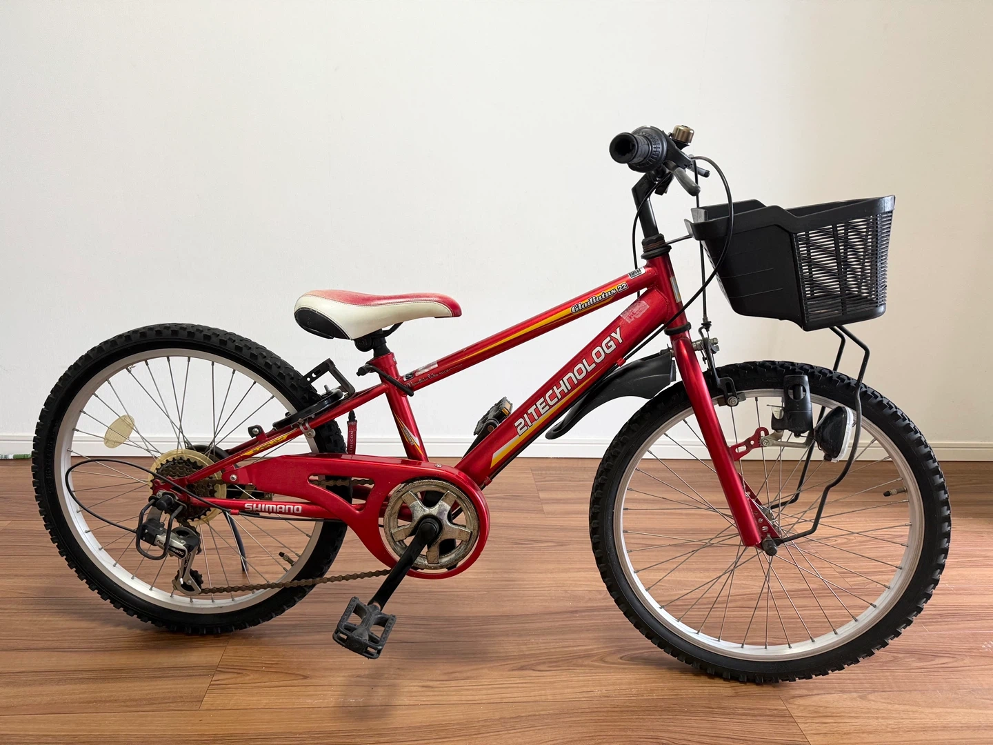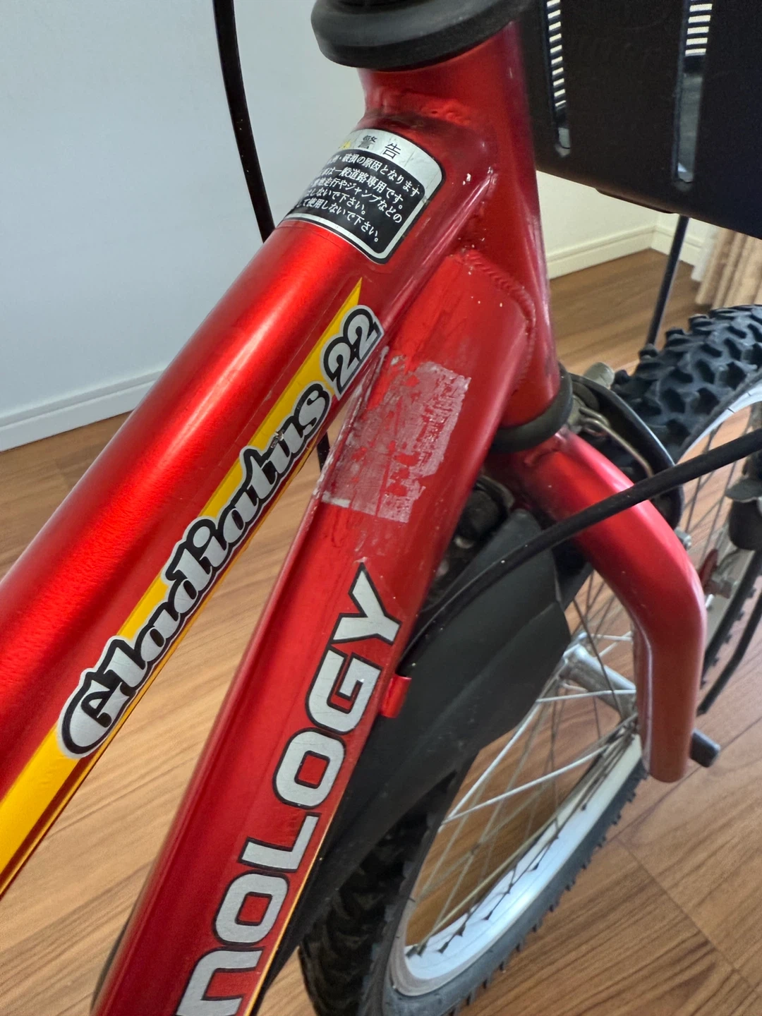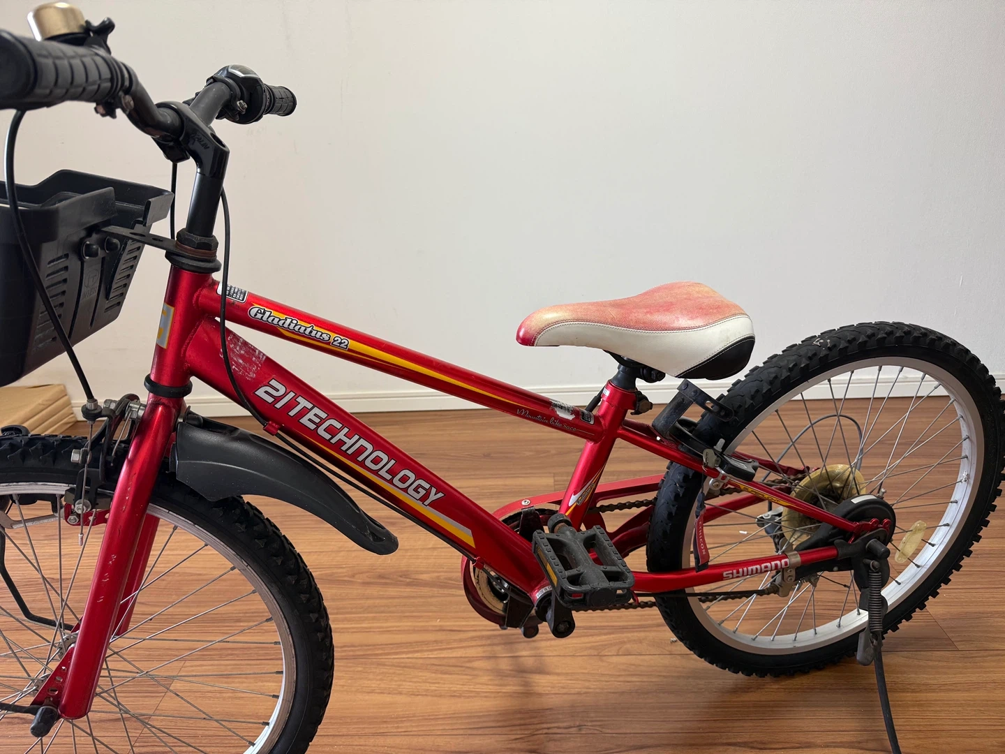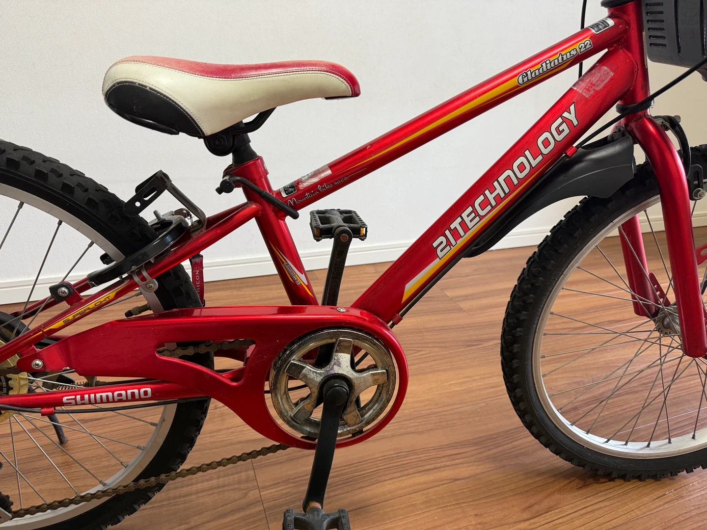 22Gradiatus 自転車 ジュニア用マウンテンバイク シマノ6段変速搭載 変速付き かご付き 21テクノロジー 後輪の泥よけがなく、カゴが写真のように少し割れていてサドルの色がはげてます。使用回数は少ないのでタイヤは比較的綺麗ですが、経年劣化のため、ご理解くださる方にお譲りできればと思います。 •子供身長:(120~135cm) ・ブランド:SHIMANO ・色:赤 中古品であることをご了承ください。