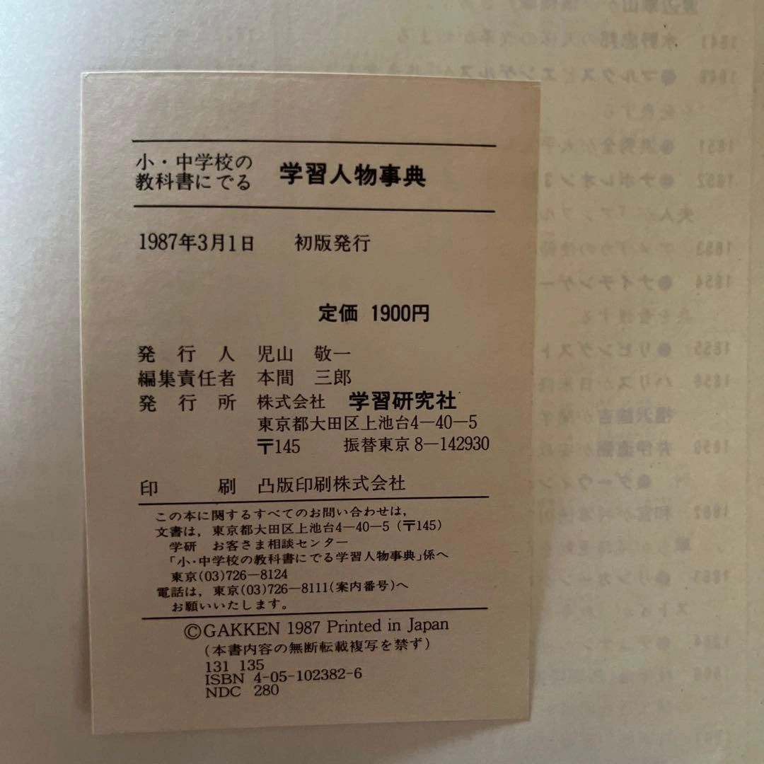 ビンテージの書物です。 学研 学習人物辞典。 なかなか出てこない物だと思います。 ご希望の方はお気軽にご連絡ください。