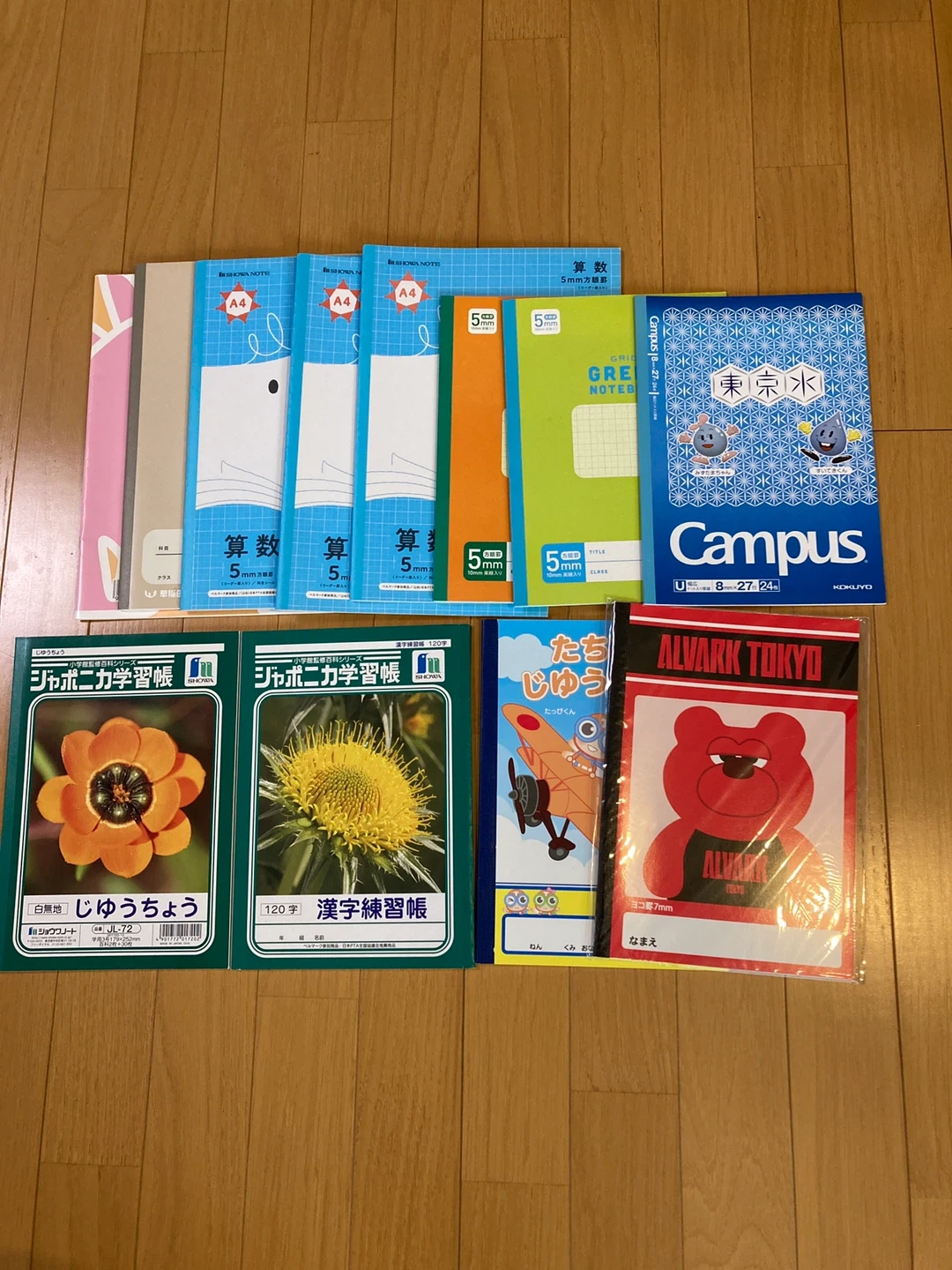 学習ノートのまとめ売りです 早稲アカ、四谷大塚ノート2冊 A4算数5㍉方眼3冊 薄いグリーン紙5㍉方眼2冊 東京水のキャンパスノート1冊 たちひじゆうちょう1冊 ALVARKTOKYO横7㍉1冊 ジャポニカ学習帳 じゆうちょう1冊 漢字練習帳1冊 の全部12冊です。 未使用ですが、多少の角スレなどあります。 中古品であることご了承ください