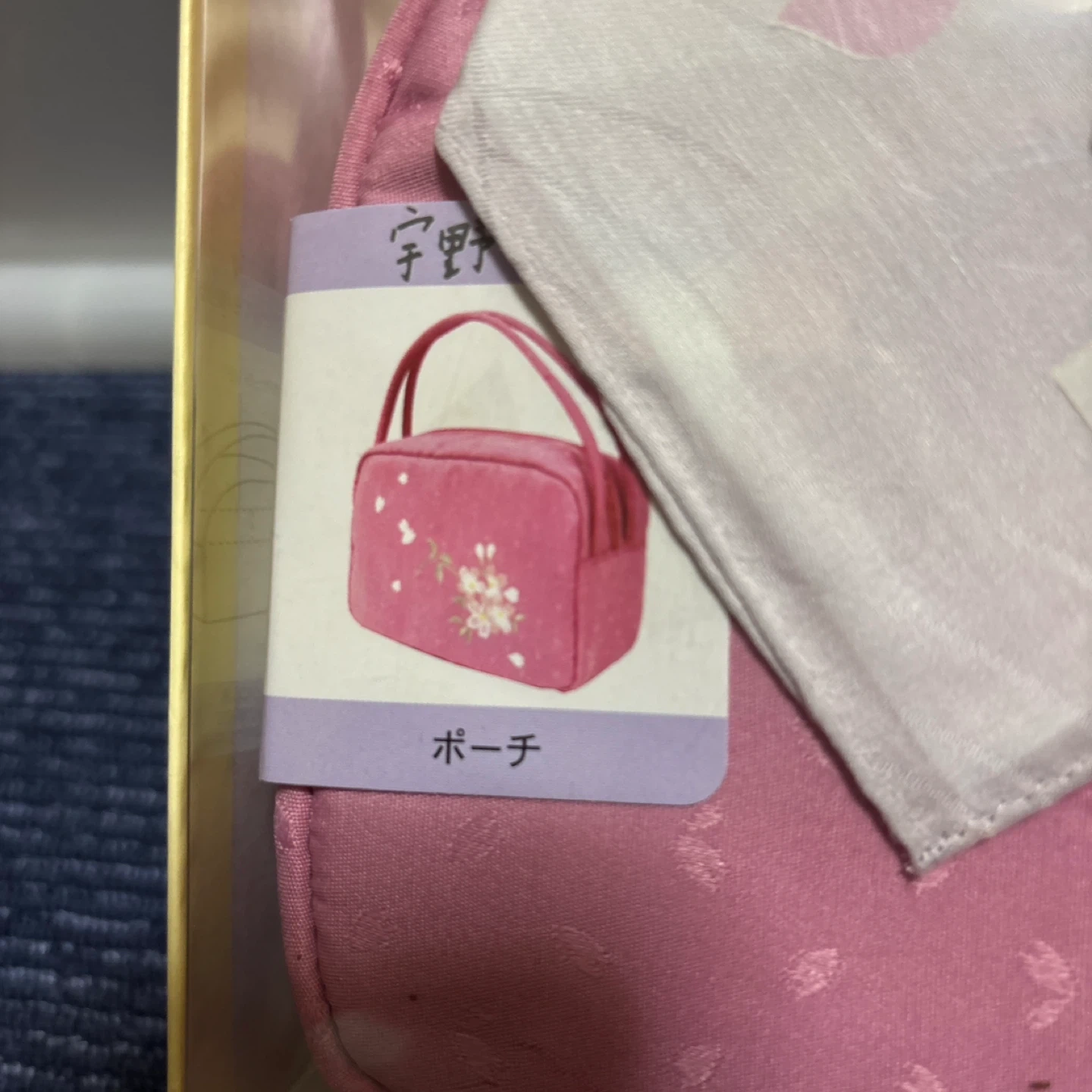 宇野千代の刺繍花柄のピンクポーチとハンカチセット