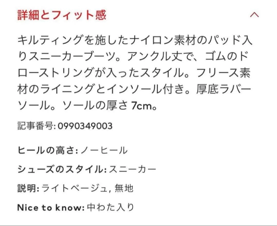 完売品 H&M ナイロン キルティング スノーブーツ ベージュ 24cm