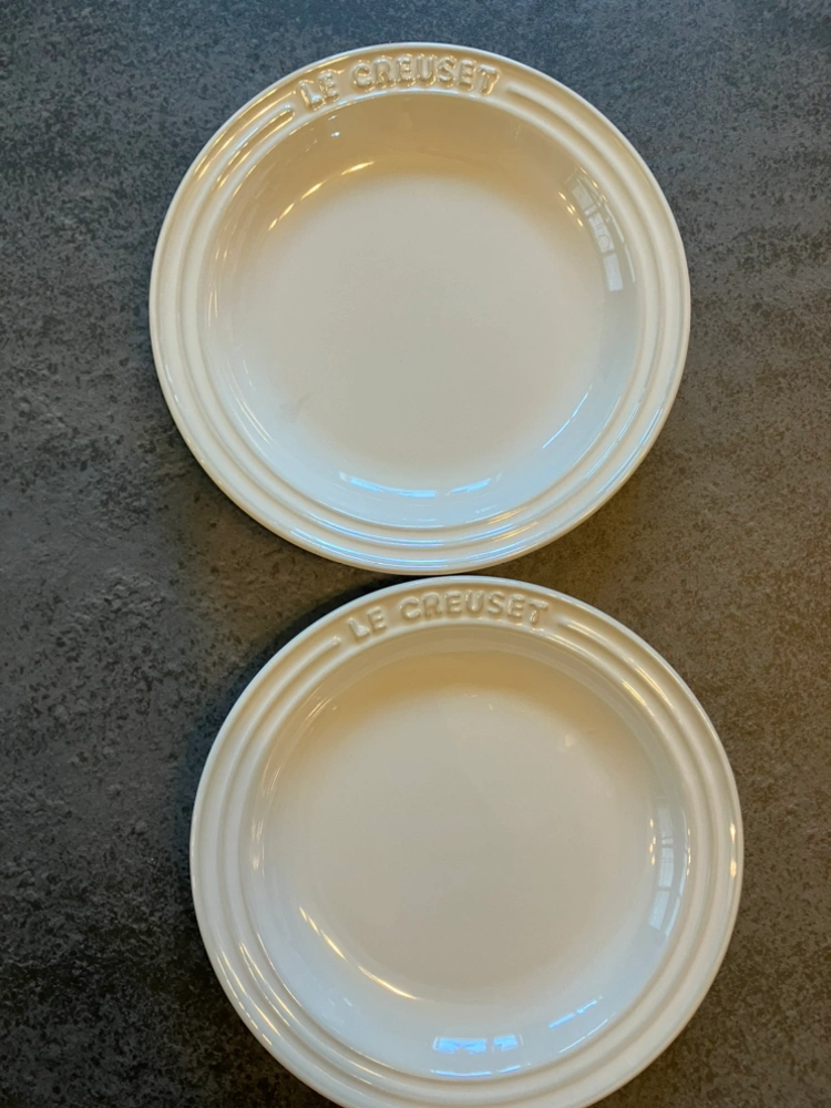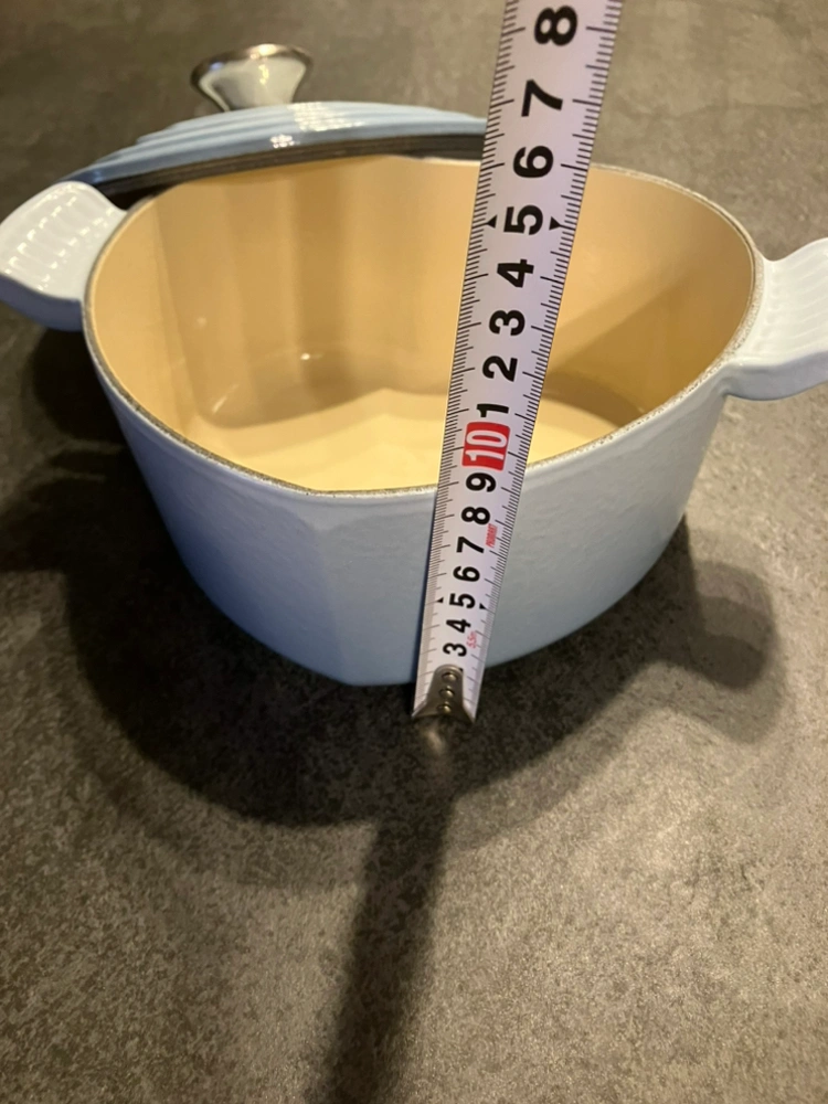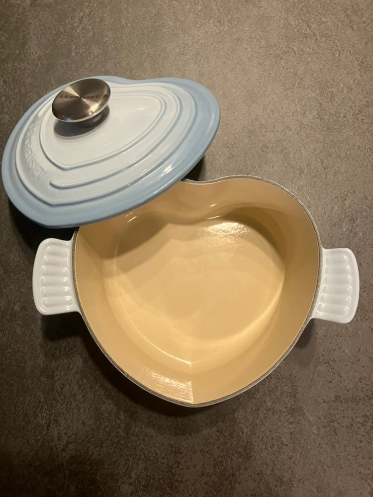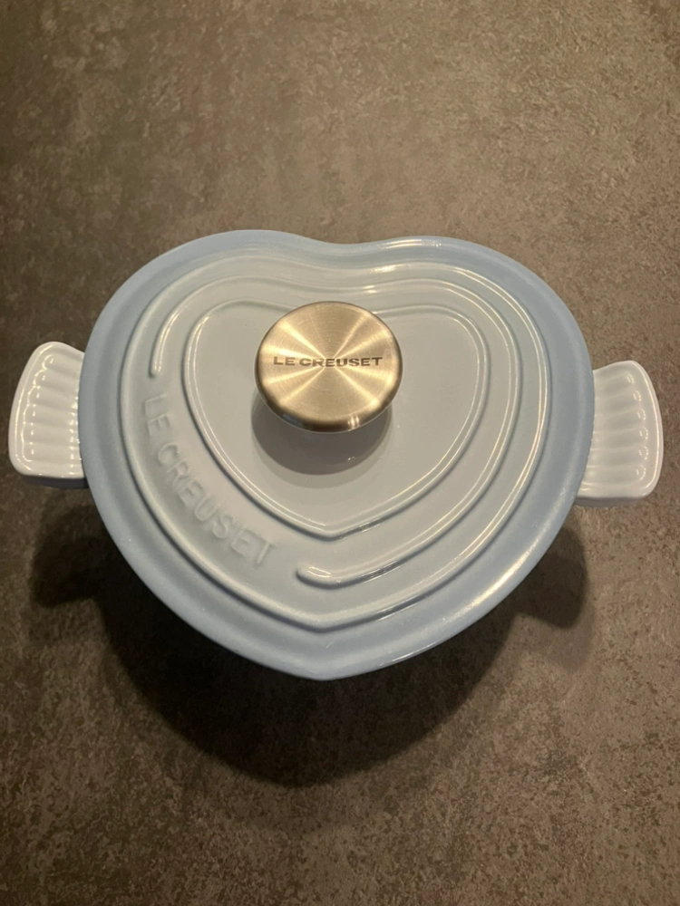 【セット内容】 ・ココット・ダムール コースタルブルー ・ラウンド・プレート 15cm ホワイトラスター×2 【ココット・ダムール】 内径:16.5cm×18.5cm 直径(取手込):-(25)cm 高さ(フタ込):8.9(13.5)cm 容量:1.9L 重量:3.2kg 【ラウンド・プレート 15cm】 直径:15cm 高さ:2.5cm 容量:- 重量:310g×2 色:コースタルブルー 定価:36,300円(税込) ハート型ココット鍋にさらにお皿がついたセットです。 ブライダルセットとしても人気のセットです。 廃盤です。 お鍋2回使用してます。 お皿は5回 お皿に1箇所薄いかたあり。 個人的には美品だと思います(^^) ※バラ売り不可※ 即購入OK!