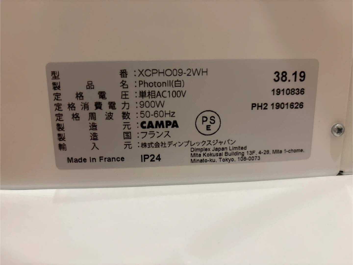 キャンパのふく射パネルヒーターです 定価39,800円のお品物です。 【情報】 ブランド:キャンパ 商品名:Photon II 型番:XCPHO09-2WH 定格電圧:単相AC100V 消費電力:900W 【状態】 使用感少なめ 後部左キャスターに擦りキズあり(写真参照) 【付属品】 取扱説明書(保証書付) 鶴川駅付近で駐車可能な場所でのお渡しを希望します。