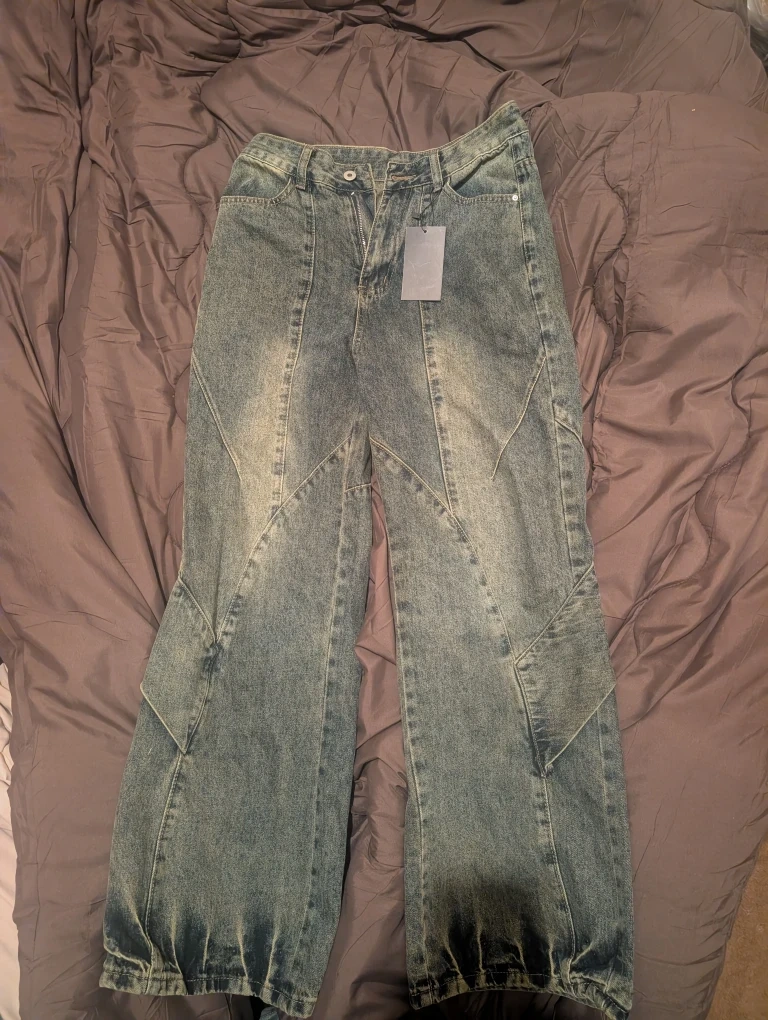 今年エゴメイで購入したデニムです! サイズが合わなかったので半額以下で出品いたします! ウエスト74 ヒップ106 股下68 ユニセックスで着れます。 お問い合わせお気軽にどうぞ!