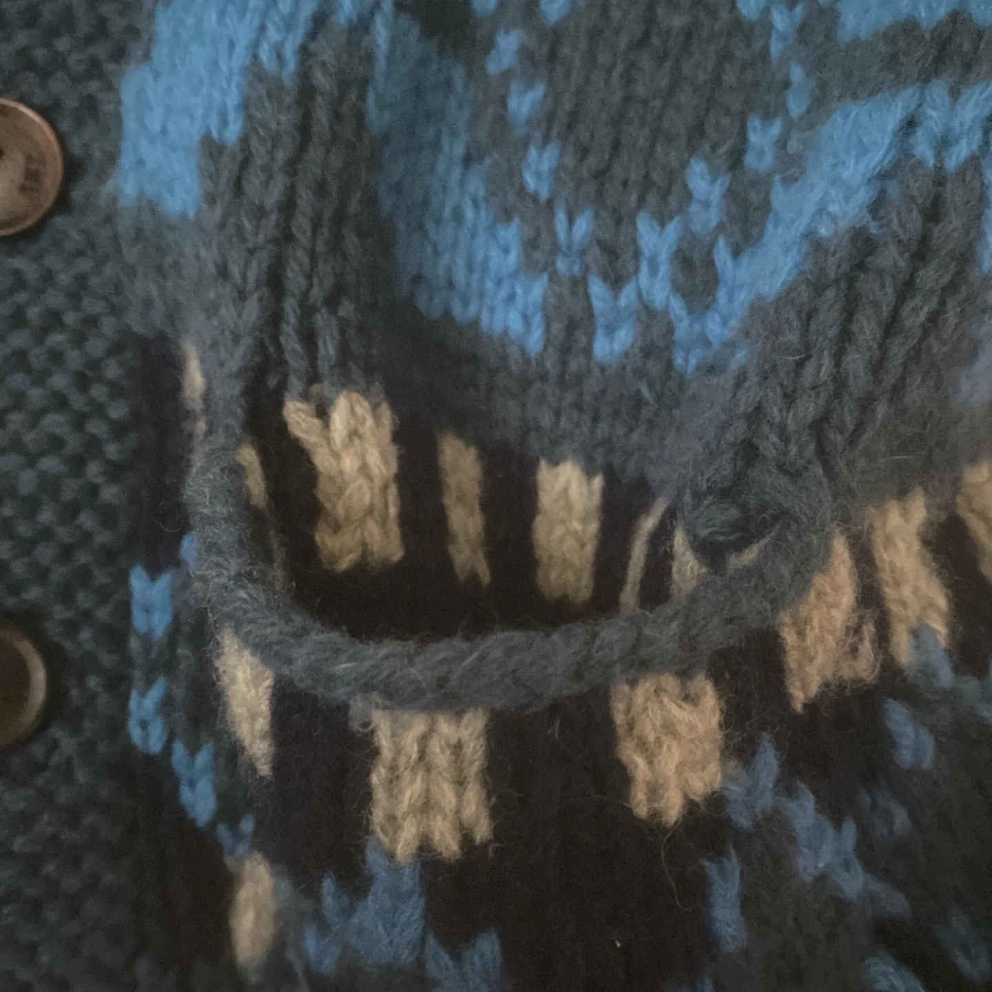 あたたかさ青系の柄編みカーディガン、TMT ほとんど使用していないので美品です。 TMTのオリジナルのボタン やポケットも付いていて細部にこだわりのあるお洋服になります。 ユニセックスでもご使用いただけます。 - ブランド: TMT - カラー: 青系 - デザイン: 柄編み - スタイル: カーディガン - バックデザイン: 柄編み - タグ: TMT 個人保管なので、 神経質な方はご確認の上、お願い致します☺︎ タバコは吸いません