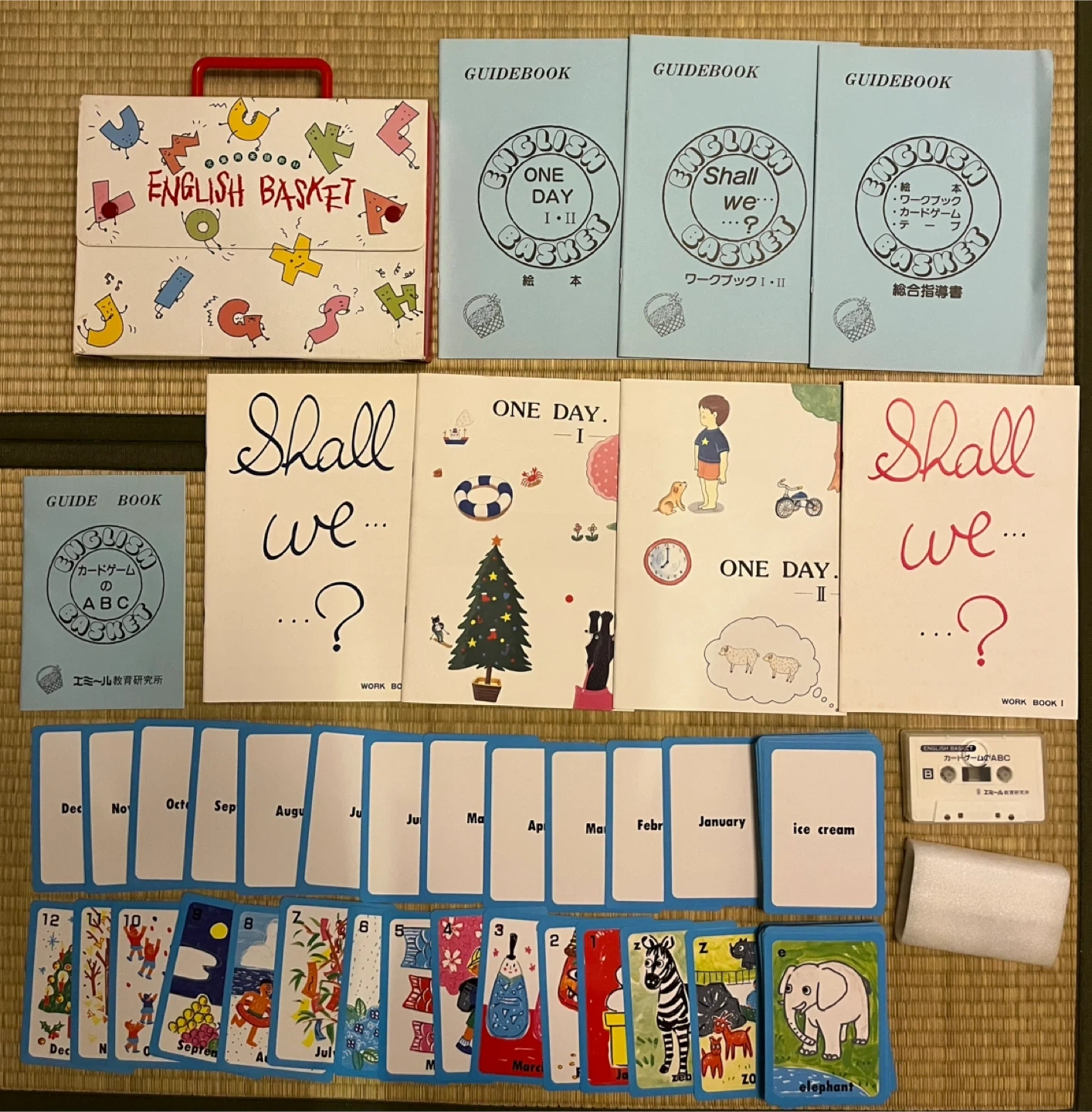 株式会社ヤマビシ エミール教育研究 児童用英語教材 English basket 定価7,500円 内容 ・絵本2冊 ガイドブック1冊 ・ ぬり絵ワーク2冊 ガイドブック1冊 ・カード 絵札64枚 読み札64枚 ガイドブック1冊 ・カセットテープ(各30分)2本 ・総合指導書1冊 かなり昔の英語教育の教材になります。 冊子に経年劣化のあるものもございます。 写真の追加のご希望等ございましたらお問合せください。 語学 単語カード English 知育 幼児教育