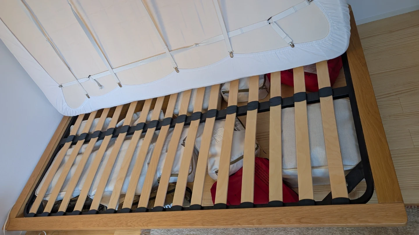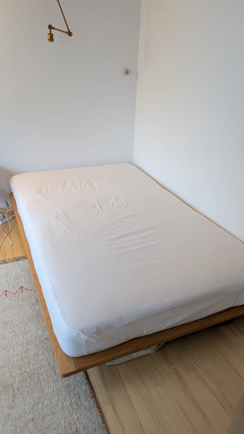 ベッドフレーム、記憶だと4〜5万円 少し違うものに見えますが、これが似ているかと https://www.muji.com/jp/ja/store/cmdty/detail/4550512892151?sc_cid=google_pla_pj_direct_cp_14797768044_adg_146642454856_cr_none_opt_online&gad_source=1&gad_campaignid=14797768044&gclid=Cj0KCQjwjL3HBhCgARIsAPUg7a5LB3iBUg_54H4f82vNXdtYLrdSoWoLmlgSFriLbq1QQuAeBWpf_-kaAh1fEALw_wcB マットレス、記憶だと4万円前後 これかは分かりませんが、大きく違いはしません。 https://www.muji.com/jp/ja/store/cmdty/detail/4550583435448 マットレスカバー2枚あり、お付けできます。交互に洗いながら使用できます。 カバーが動くのが嫌いで、写真のようにゴムで固定しています。これもお付けできます。 女性が短期間使用していたものできれいです。破損、汚損は特になく、マットレスもヘタっておらず状態良いです。 よろしくお願いします。