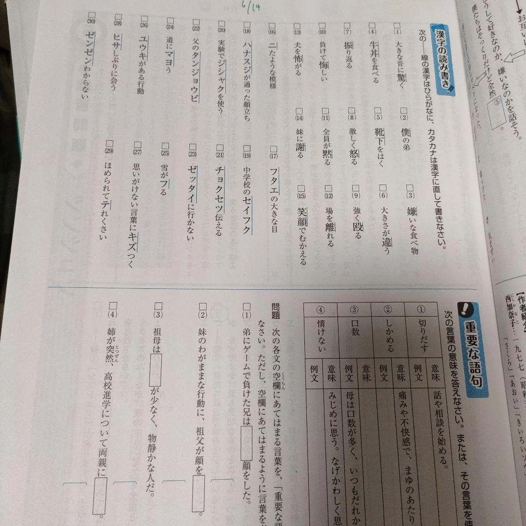 中学1年生向けの国語 定期テスト対策テキストです。 スコアアップ(漢字語句のトレーニング)、チェック&トライ、解答と解説付き。 - 科目: 国語 光村図書出版 - 学年: 中1 子供が使用した中古品です。日付やテキストに線やメモを引いてあるページがありますが、答えは書き込みしていません。えんぴつで消せるものは消してあります。 また、チェック&トライは水で濡れてしまって表紙がよれてしまいましたが、中は問題ありません。 中古品ですがまだまだ使用可能です。汚れ等、気になさらない方にご検討頂ければと思います。 ご覧いただきありがとうございます。