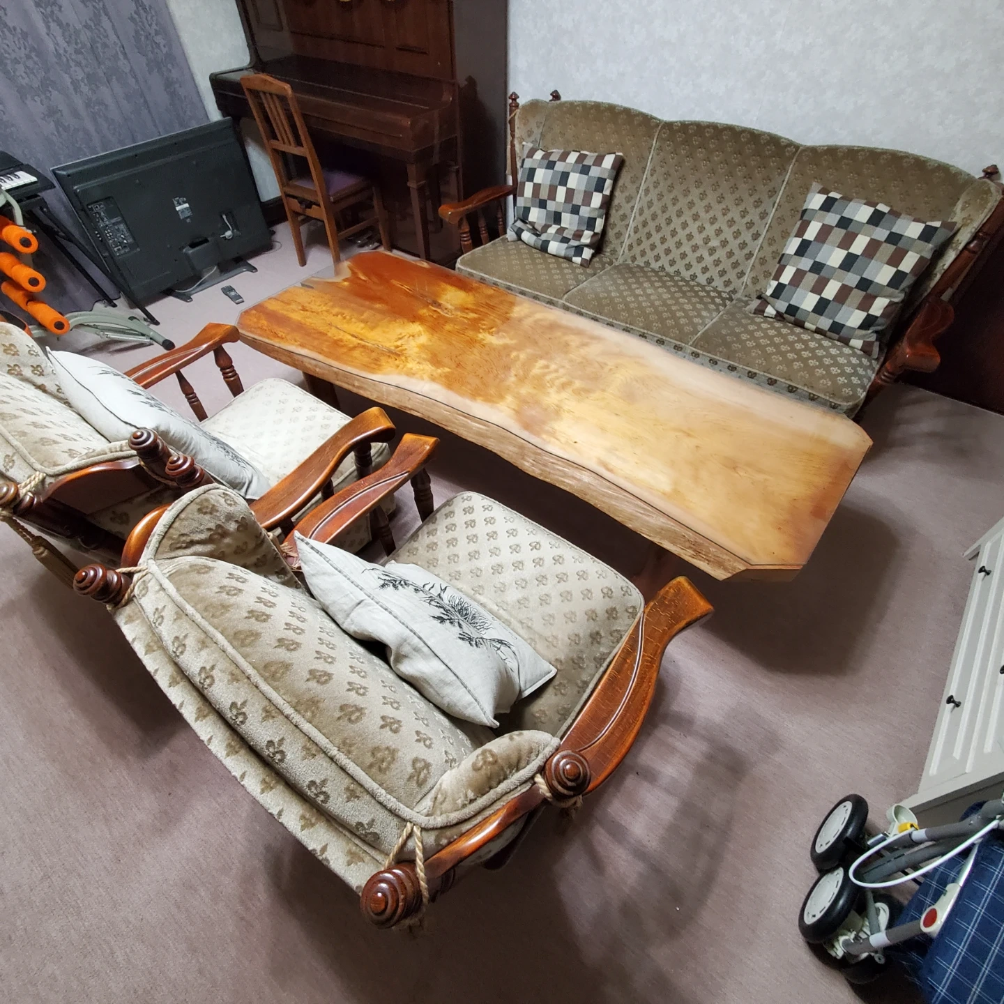 昔祖母が本体送料手数料消費税代引きの合計1,855,000で購入。ソファー3個と机全部セット。机はオーダーメイド木製ガラス天板。 【他界したので本体の詳細聞かれても不明】 喫煙者自宅保管の為、本体に対して神経質な人、完璧な物を求める人はご遠慮下さい。元値から半額以下の限界突破まで値下げして販売してるので、これ以上は、【いいね押して値下げ待ちしても売れなくても下げません】 即日即時やド深夜、早朝の取引も大歓迎なので、お気軽にメッセージください。京王井の頭線三鷹台駅の家まで、これが入る大きめのトラックで来れる人でお願いします。車が知り合いから借りれないなどの場合、東京 トラック レンタルで検索すれば、数時間なら数千円程度で大きなトラックをレンタル出来ます。 最後まで読んでくれて購入確実の人オマケで値引きします。