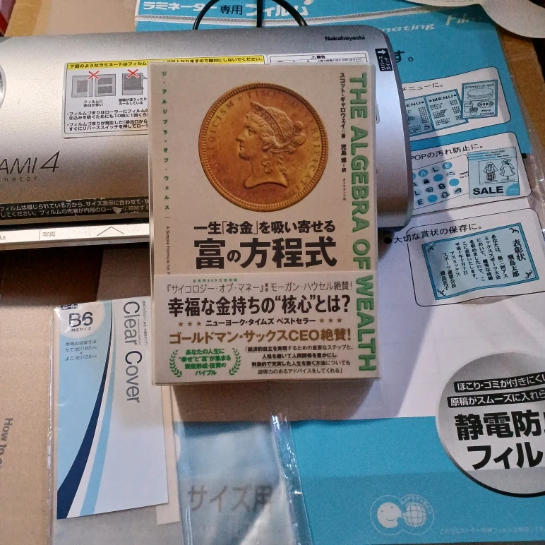 書籍、富の方程式をラミネート加工し水や汚れに強く、さらにクリアカバーに入れました。 書籍は新品ですが、特殊加工のため書店より加工代でお高くしてあります。 画像2枚目はamazonダウンロードです。 THE ALGEBRA OF WEALTH 一生「お金」を吸い寄せる 富の方程式 https://amzn.asia/d/2fkvykK 書籍内容はamazonリンク。 その他にあなたのお持ちの本、ラミネート加工いたします。 お問い合わせください。