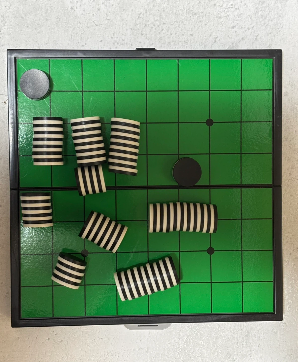 将棋盤と駒のセットです。 ・盤の色:緑 ・駒の色:白と黒のストライプ ・状態:使用感少なめ 中古品であることご了承ください