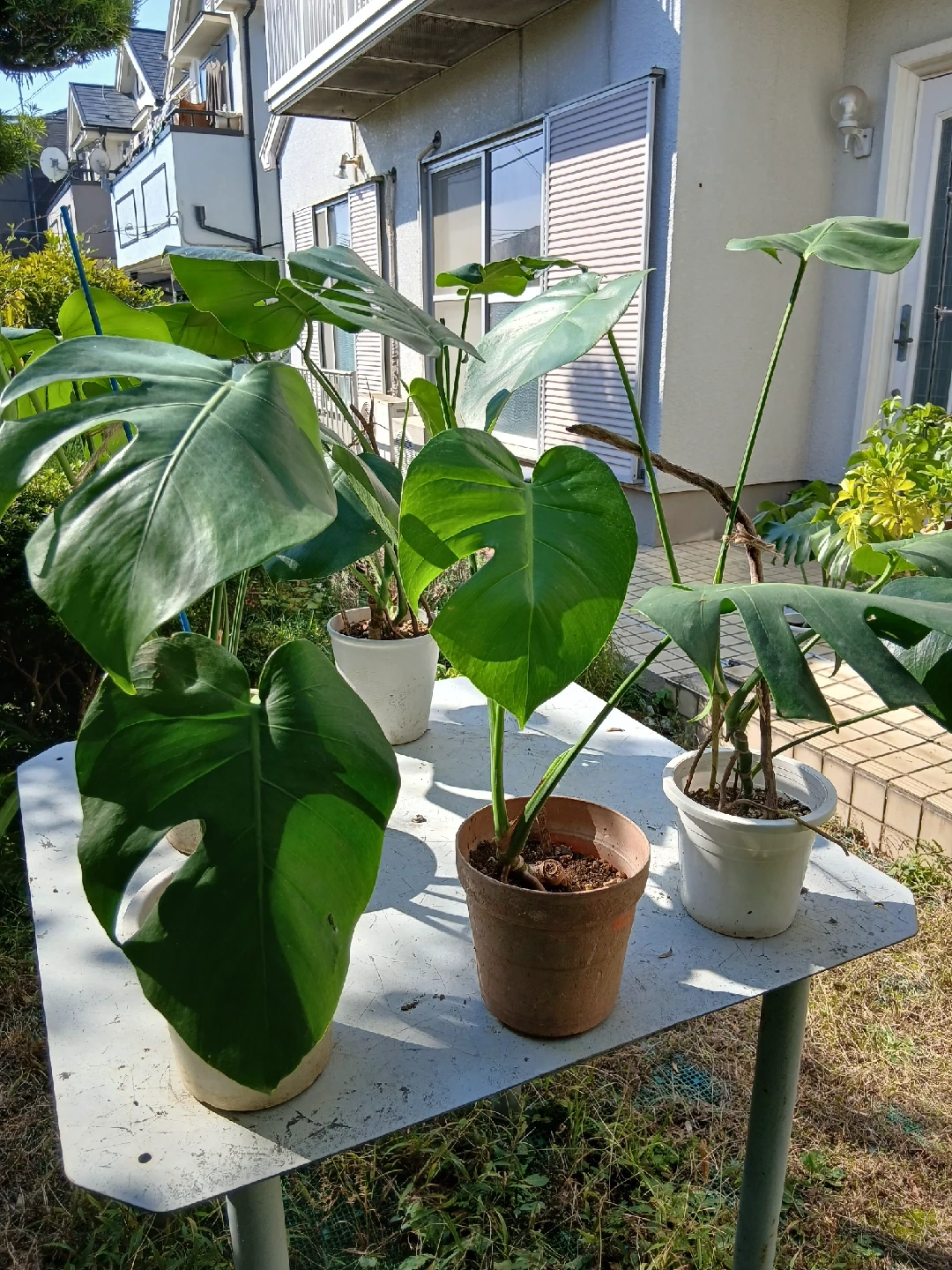 カツト苗から育てたモンステラです。 親株は葉に深い切れ目のあるデリシオサです。 生育途中なので、まだ葉に切れ目のない物が多いです。今が植え替えの時 期なので、お好きな鉢に植え替えて楽しんで下さい。 寒くなって来ましたので、室内で育てるほうが良いと思います。 10~12鉢ありますので、ご自由にお選び下さい。 ¥300から¥1000 まで先着順となります。 ・状態:良好 ・鉢の色:白、茶色 ・葉の状態:ハート形 いずれも素人が趣味で育てた品物ですので、ご購入後の対応はできません。ご了承下さい。 ご不明点があればお気軽にご連絡ください