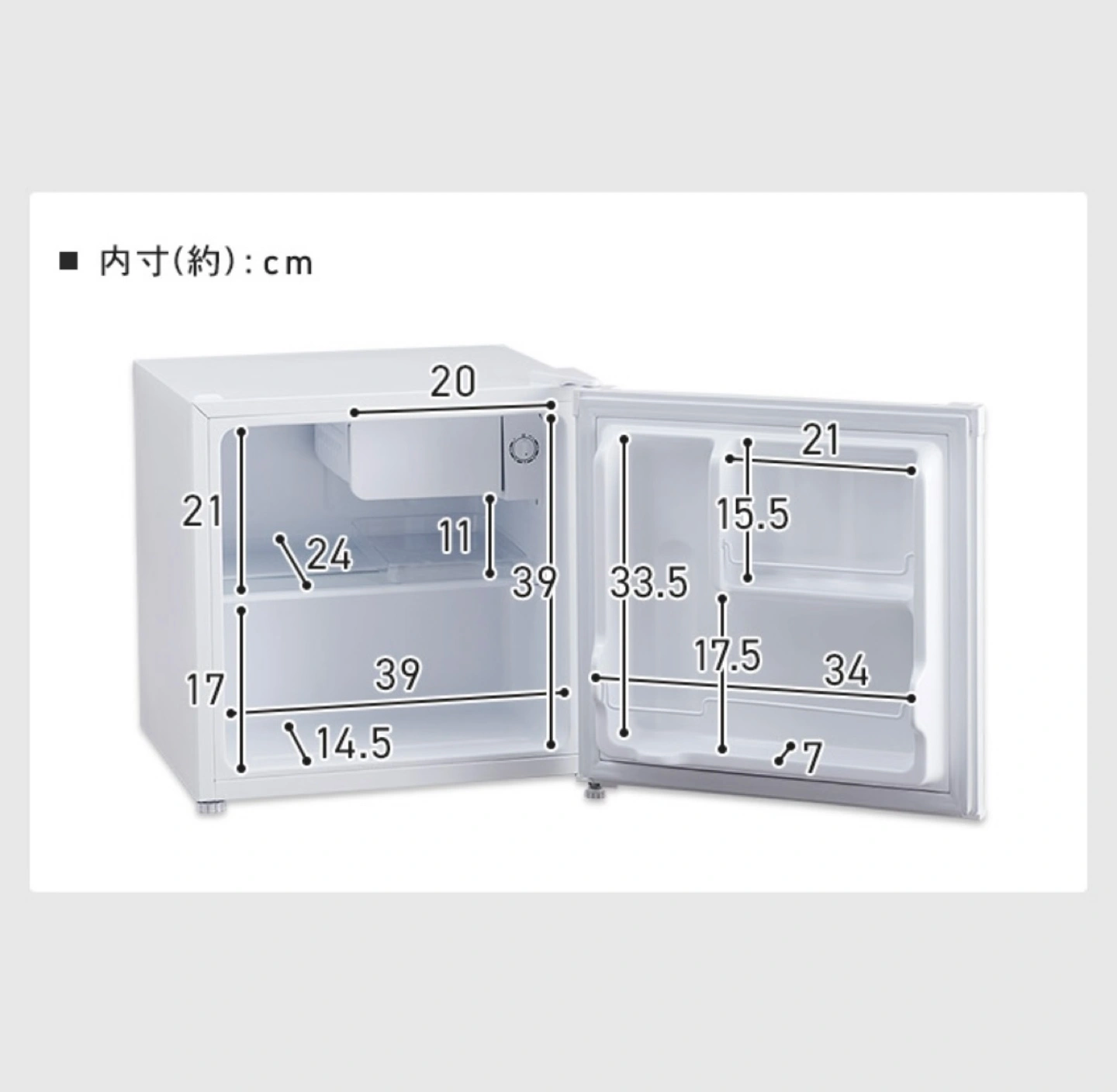 小型の冷蔵庫です。 【情報】 容量:46L 型番:PRC-B051D ●商品質量 約15kg ●定格内容積 46L(※1) ●定格電圧 AC100V ●定格周波数 50/60Hz ●定格消費電力 39W(50Hz)/39W(60Hz) ●年間消費電力量 111kWh/年(※2)(※3) ●電源コード長さ 約1.8m 【サイズ】 外寸(約):幅47cm、奥行44.7cm、高さ49.6cm 内寸(約):幅39cm、奥行14.5cm、高さ39cm (画像参照) 【状態】 使用感少なめ、全体的にきれい 半年ほど使用した後、メインの冷蔵庫を大きくしたため 不要になりました。 ご不明点があればお気軽にお尋ねください。