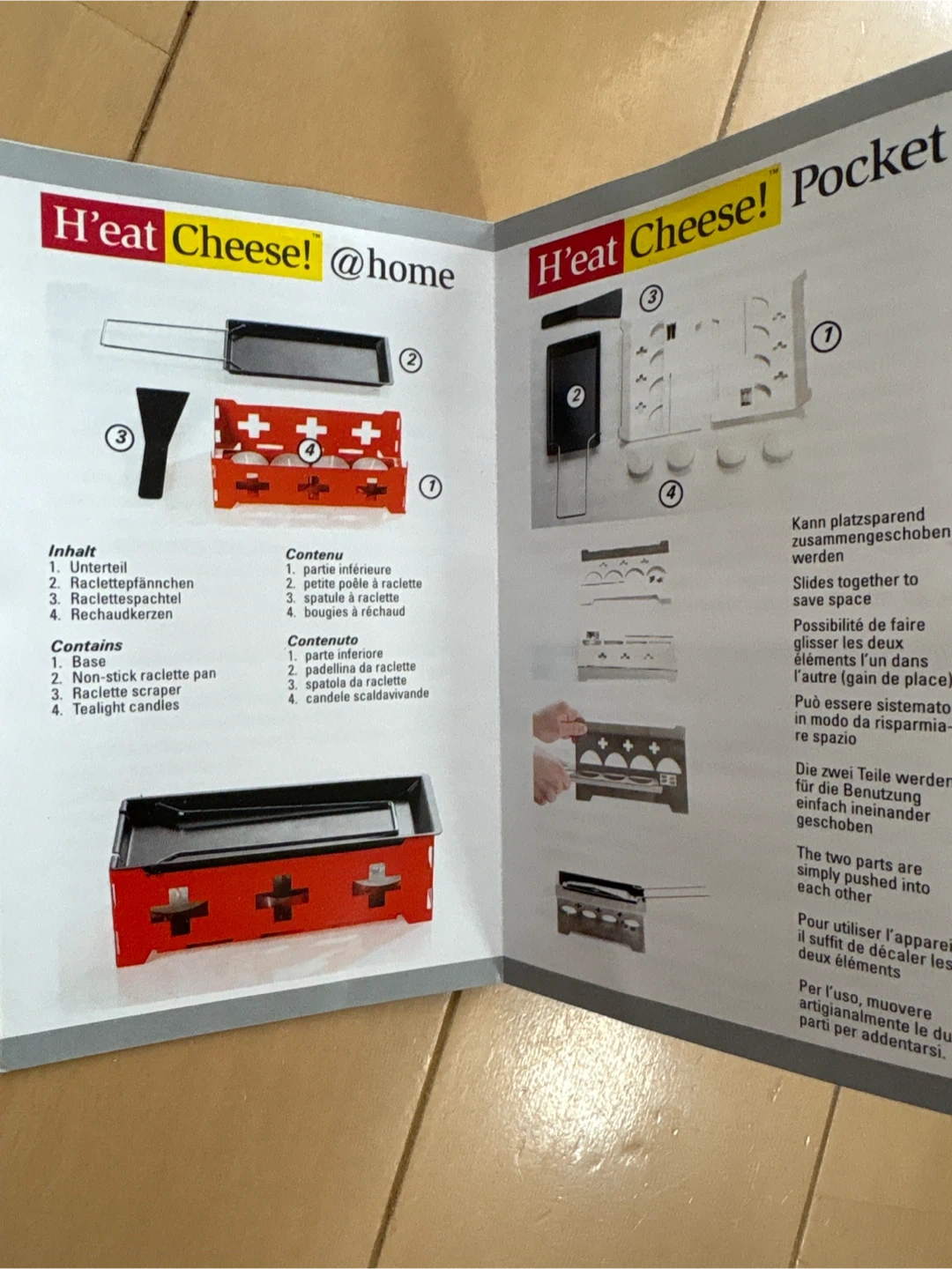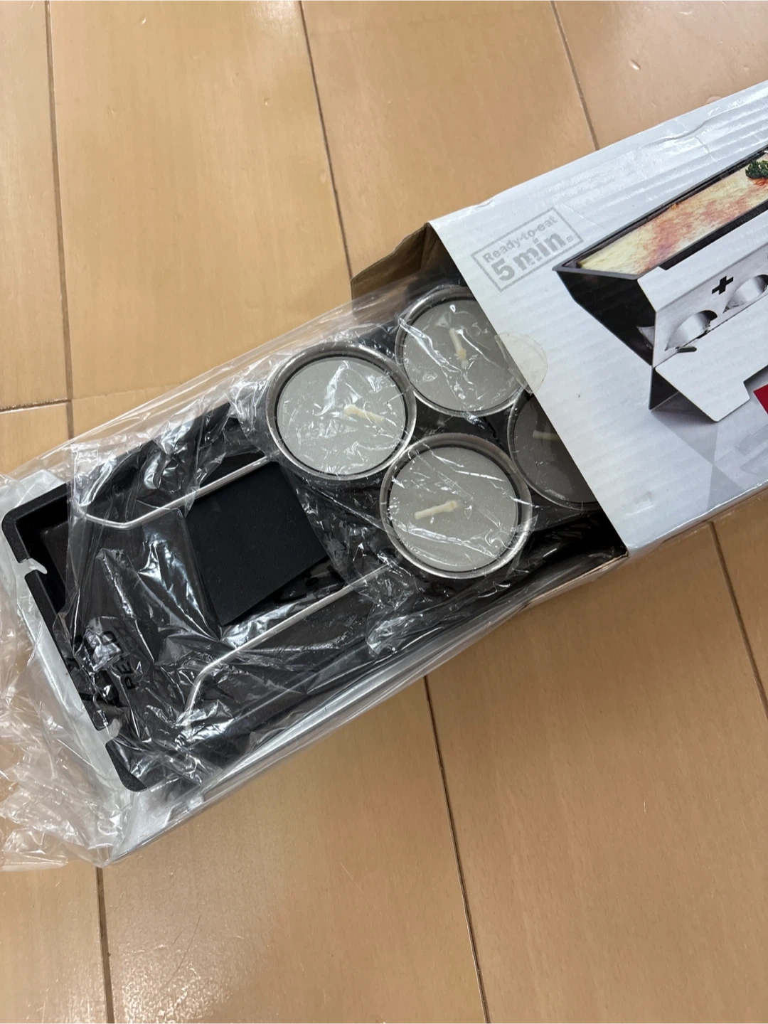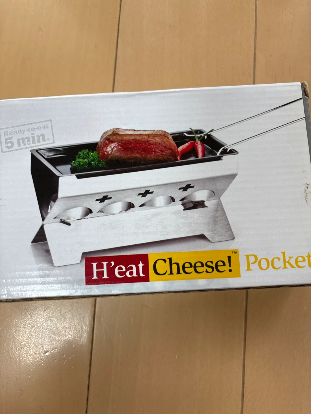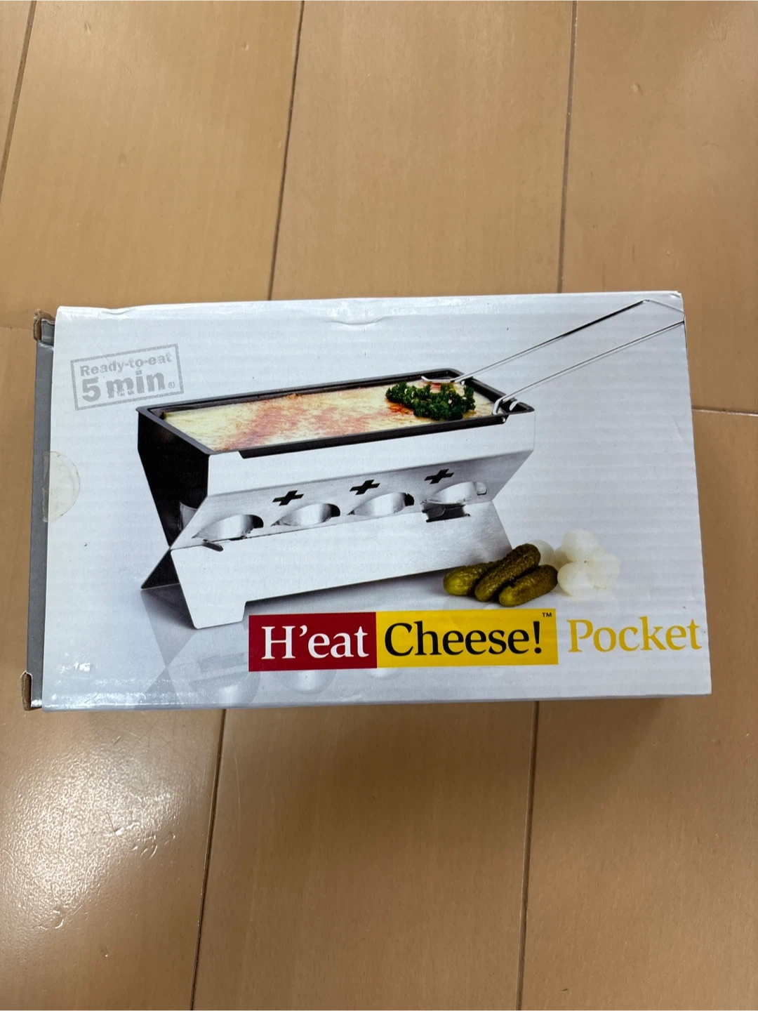 旅館などの小さいお鍋のような感じで、ろうそくで温めます。 小さなホットプレートとして使えるものです。 携帯用でも ・ブランド名:H'eat Cheese! Pocket ・状態:未使用 ・Ready-to-eat 5 minと記載あり ・付属品:写真に写っているものが全てです 長期保管していたため箱にへこみなどありますが、未使用です。 10×15cmくらいの小さいものです。 海外で購入したものなので、説明書が英語表記ですが、簡単に組み立てられそうです。