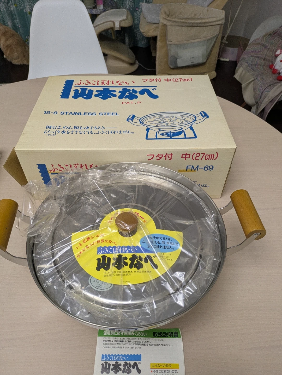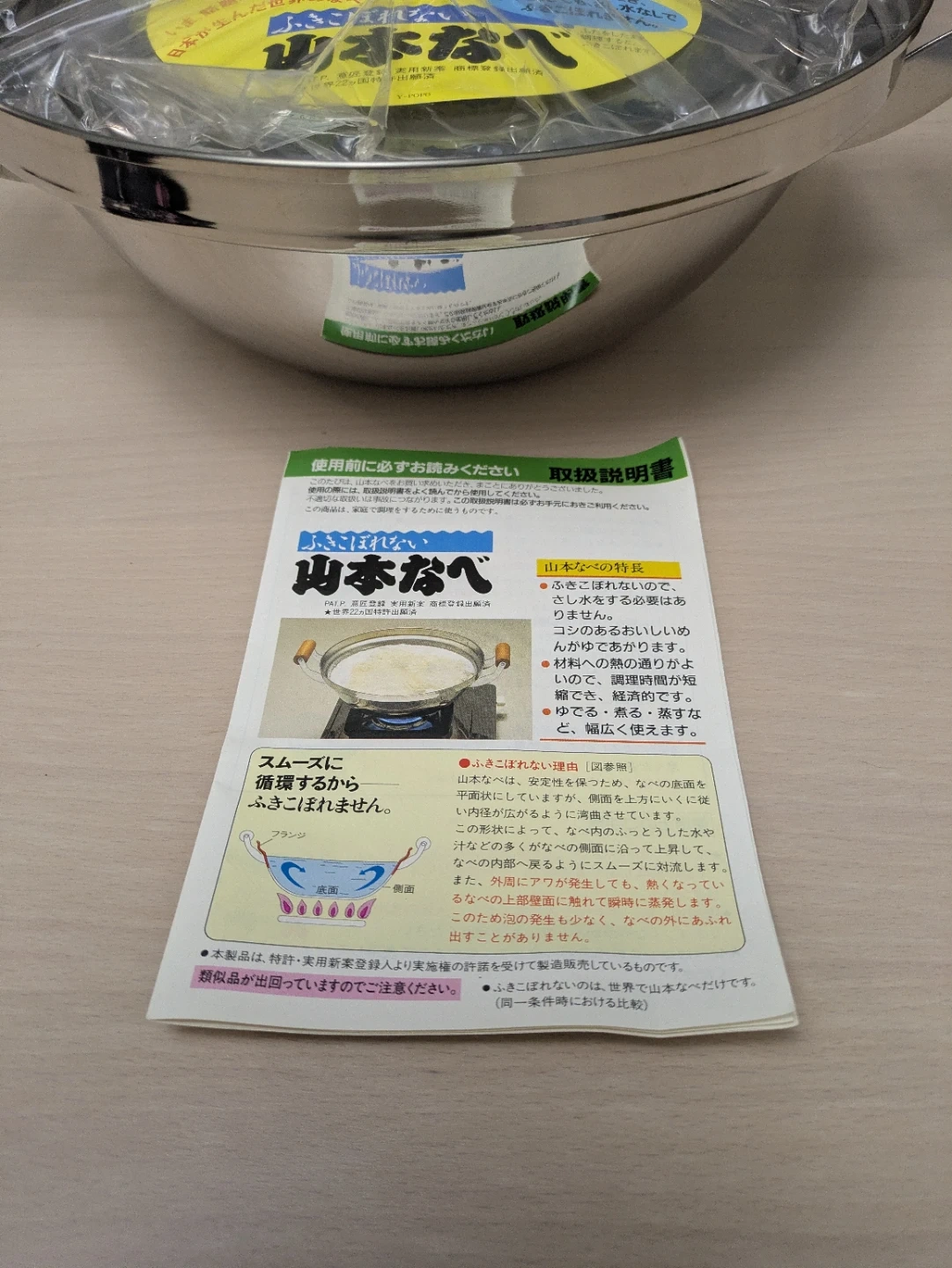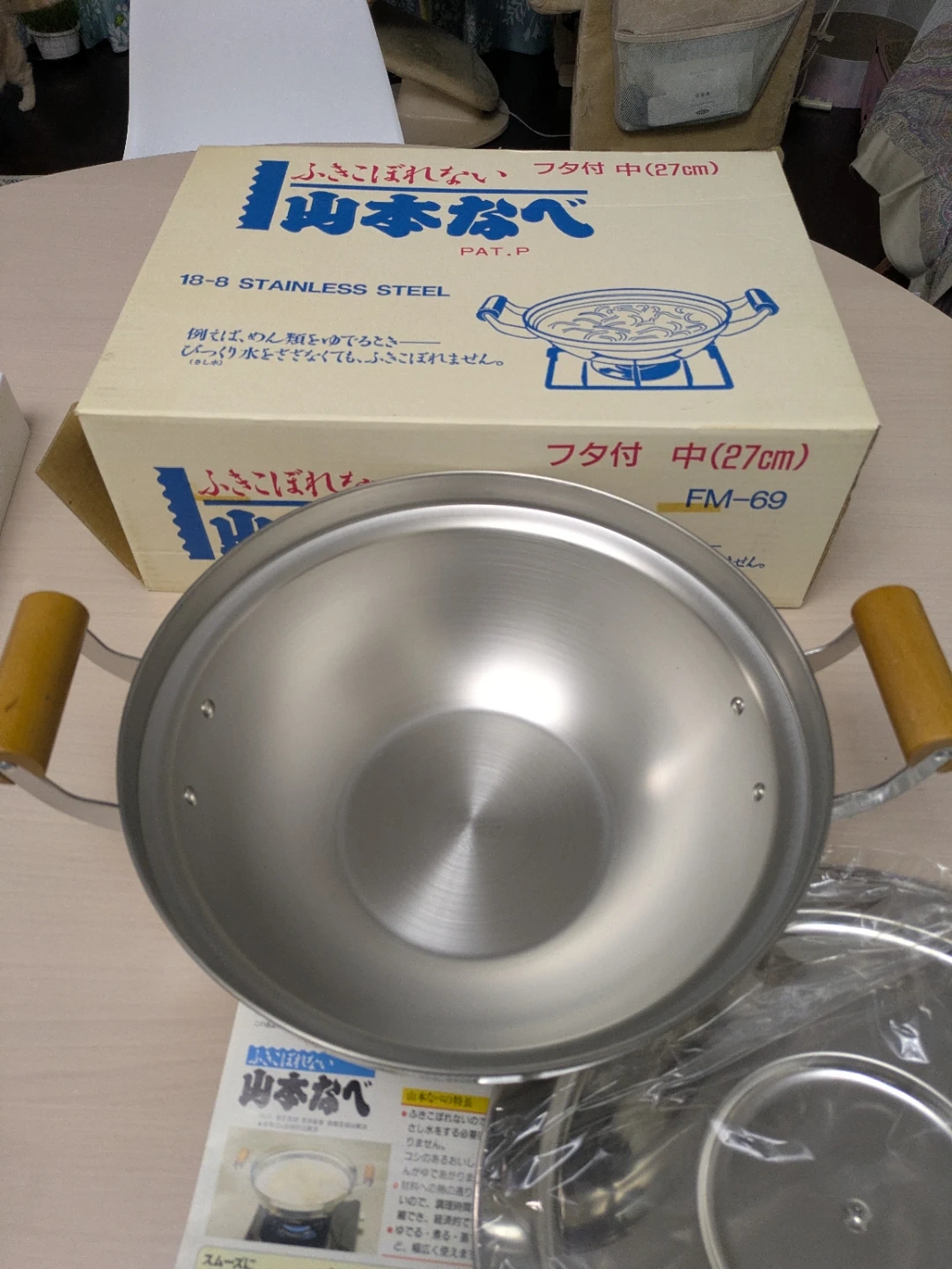 山本なべの両手鍋です。 【情報】 ブランド:ヤマモト(山本なべ) サイズ:27cm 素材:18-8 ステンレス 付属品:箱、取扱説明書 【状態】 未使用品 ご不明点があればお気軽にお尋ねください。 未使用ですが自宅保管が長いです。 気にならない方どうぞ。