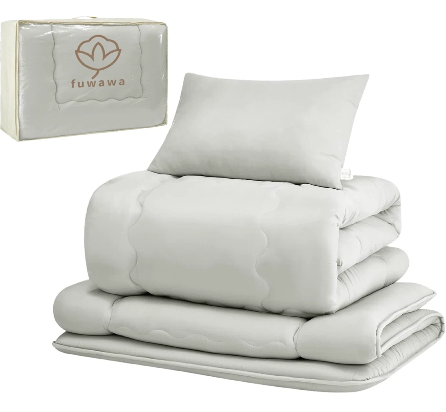 フワワの寝具セットです。 ・枕、掛け布団、敷布団のセット ・収納袋付き ・全体的にきれい ⭐️来客用で買って2-3回しか使っておりません。 8000円ぐらいで買いました。 お気軽にご連絡ください! https://amzn.asia/d/9zSNGYy