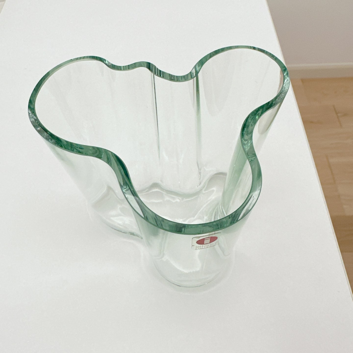 iittala イッタラ アアルトベース 1998年にアアルト生誕100周年を記念して作られたものです。 底に刻印あり、あまり出回らないとても希少なお品です。 Aalto生誕100周年記念の限定カラーclear1937です。 1937年当時作られていた、少しグリーンがかったクリアカラーになります。 高さ約9.5cm・幅(最大の所で)約11.4cmです。 目立つようなダメージ、使用感等なく良好なコンディションかと思います。 長らく保管していたお品物になりますので微細キズ、汚れ等はご容赦下さい。 箱はありません。 お写真ご確認の上ご購入お願いします。 #イッタラ #iittala #100周年 #アルヴァアアルト #記念 #フラワーベース #花瓶