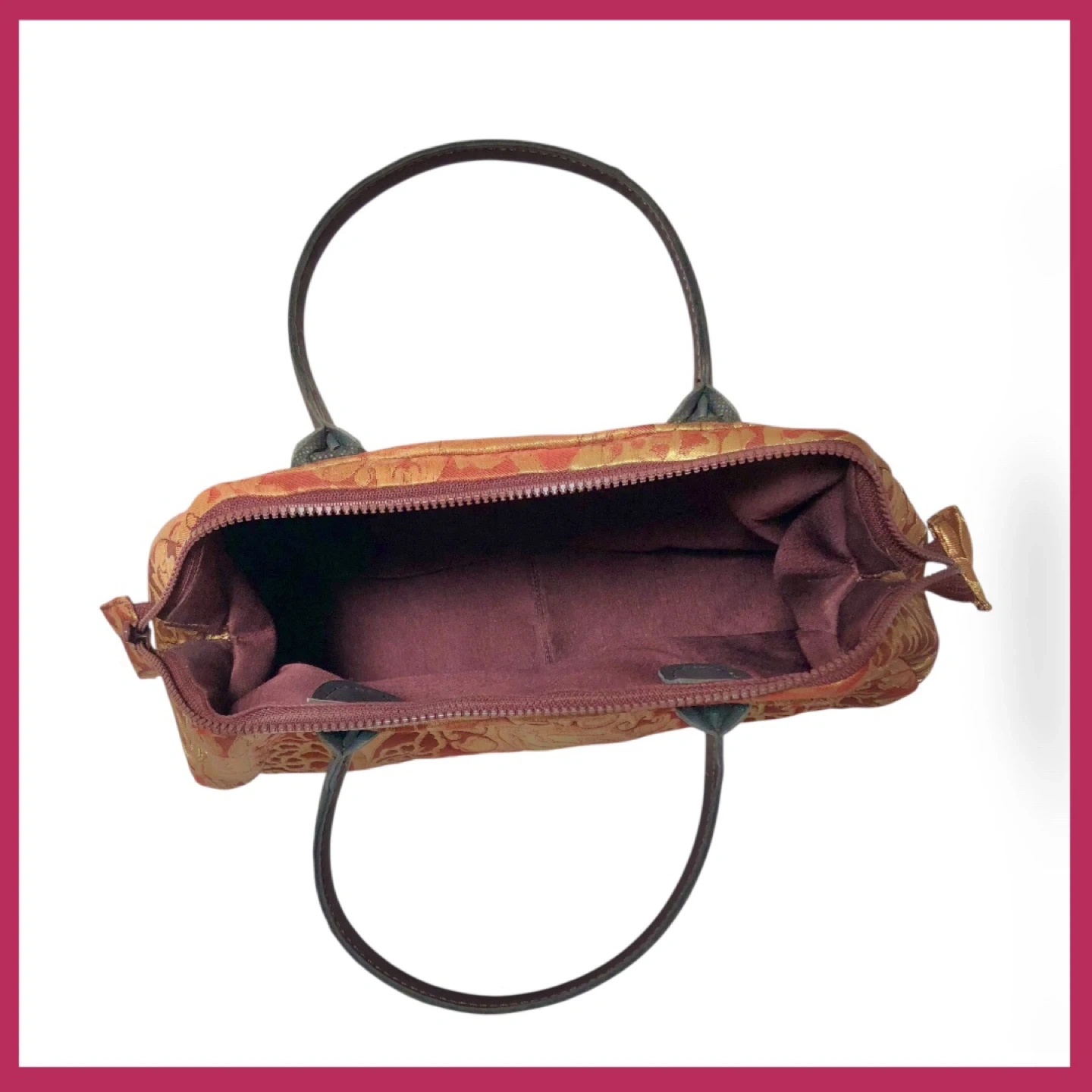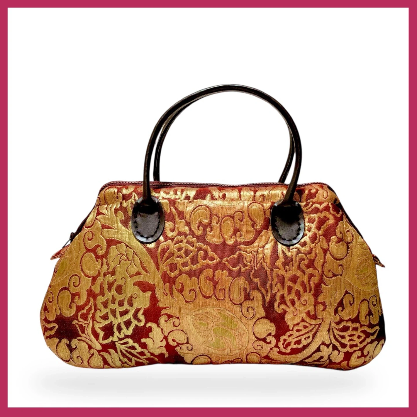 茶系の帯地に、ブロンズの図柄の一点物ハンドバッグです。帯地に特段汚れなどは御座いませんが、こちらはユーズド品の リメイクバッグです。ご承知おき下さいませm(_ _)m - 新品未使用 - 色: 茶系/ブロンズ - サイズ: 約W33cm x H約18cm x D約10cm 平置き測定 - 素材: 本体は正絹/ハンドルは合皮 - ポケット:なし - スタイル: ファスナー式ハンドバッグ - 郵送:アンコ抜きで平たくして郵送予定 - 状態は画像をご確認ください ☆ ご覧いただきありがとうございます。ご不明な点がございましたら、お気軽にお声がけくださいませ(*^^*) 【受渡し場所】笹塚駅 【受渡し日程/時間帯】幅広く対応可 #着物リメイク #ハンドメイド #帯バッグ #着物バッグ #ハンドバッグ #和装 #和風バッグ #着物バッグ #帯バッグ #成人式 #振袖 #一点物 #個性的 #帯リメイク #ギフト