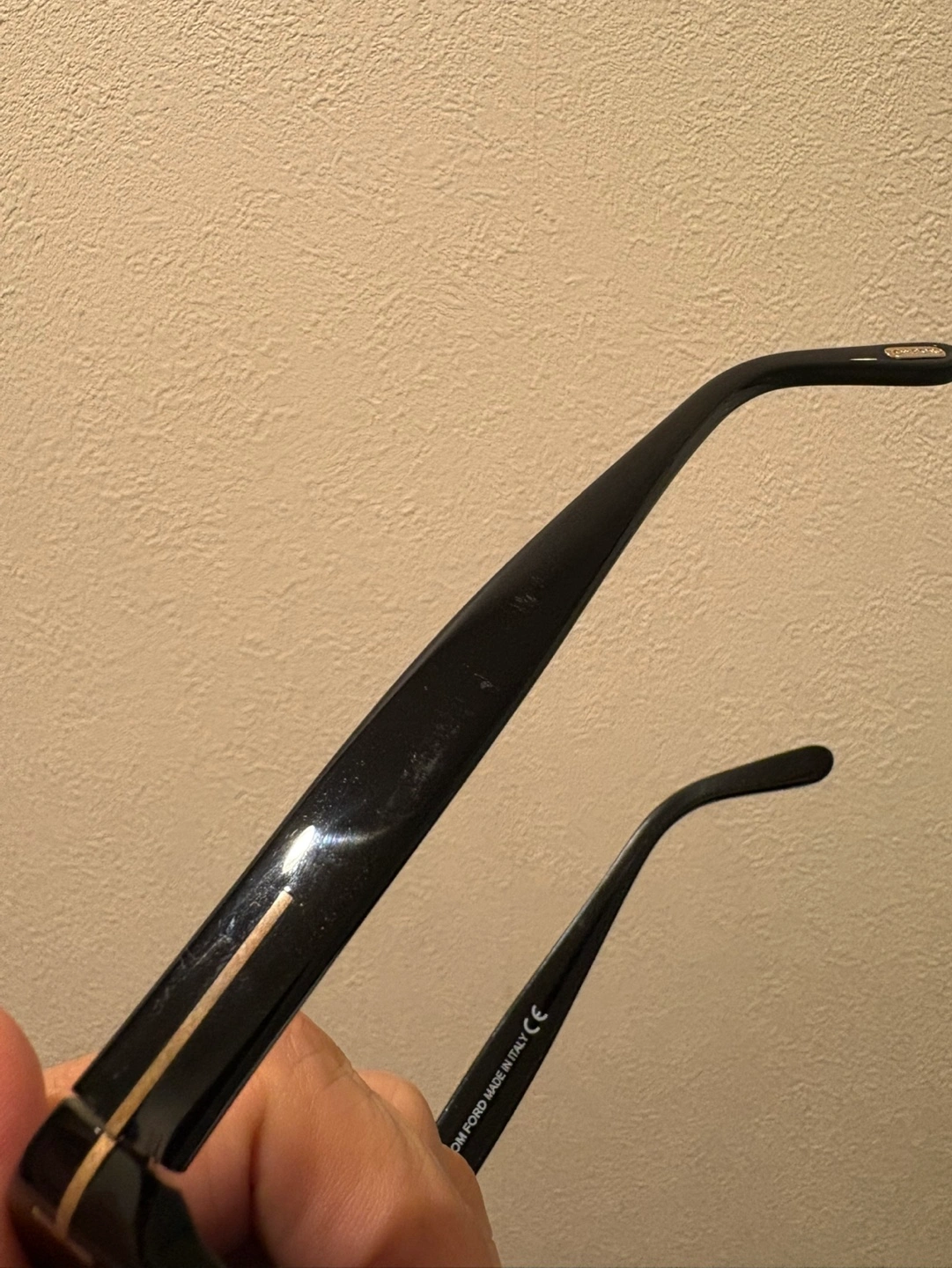 平野紫耀さん着用モデル トムフォード サングラス TF237-F TOM FORD Snowdon TF237-F 01B 51 21 145 「007スペクター」でジェームスボンド役のダニエル クレイグさんや「THE RAMPAGE」川村壱馬さん、岩田剛典さん、平野紫耀さんが愛用しているモデルです。 また、福山雅治さんや木村拓哉さんが愛用している「TF537-F」とは、レンズだけが違うだけで、同じフレームの商品です。 そして、こちらはアジアンフィットモデルといい、アジア人の骨格に合わせて鼻当てが高く設計されており、掛けやすさが大幅に向上しており、顔からもずれにくい設計になっているそうです。 型番の最後のFがその証です。 写真に写りにくいのですが、小さな使用傷はあります。 こめかみと右上に少しぶつけた跡があります。 左テンプルに擦り傷があります。 何度も撮りましたが、唯一撮影できた最後の3枚でご確認ください。 私は今回までここに傷があったことすら気がつきませんでした。 レンズに気になる傷はありません。 写真を拡大して気になることはご質問ください。 すでに生産終了しているモデルですが、限りなく未使用にこだわる方はご遠慮下さい。 1_レンズ横幅:51mm 2_レンズ縦幅:38mm 3_レンズ間距離:21mm 4_フレーム横幅:140mm 5_テンプル長さ:145mm 6_フレームカラー:051(ブラック) 7_T字アイコンカラー:ゴールド 8_レンズ:ブルーライトカット仕様(UVカット・反射防止も含む) ※『TF5178-F』のブルーライトカットレンズ仕様ver.のため品番を 『TF237-F』として発表しているモデルとなります。サイズは全く同一です。 定価:58,000円 ◾️対象物 サングラス本体 標準レンズ 標準ケース(車のダッシュボード内で保管、スレ傷、使用感あり) メガネクリーナー:社外品 TOM FORD(トムフォード)とは 「GUCCI」、「YVES SAINT LAURENT」でクリエイティブ・ディレクターを務めたトム フォード氏が設立したアメリカ発ファッションブランドです。 #トムフォード #スノードン #tomford #snowdon #TF237 #TF537 #TF5178 #平野紫耀 #木村拓哉 #岩田剛典 #福山雅治