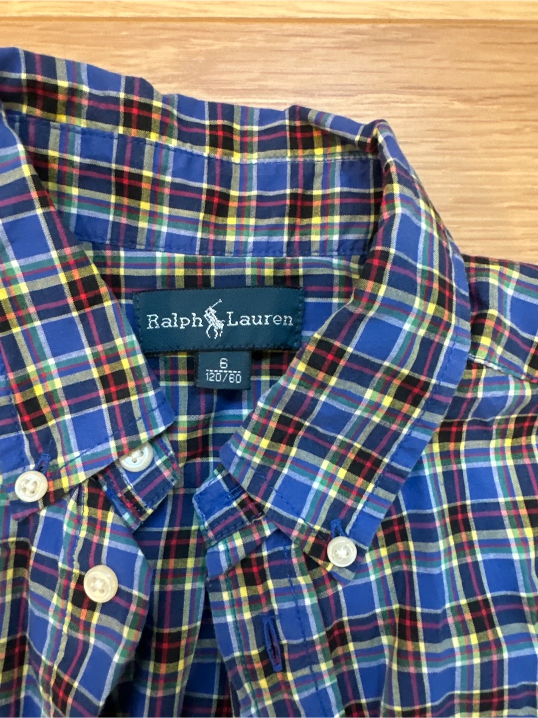 ラルフローレンのチェックシャツです。 ・ブランド:ラルフローレン ・色:青、赤、黄色、黒などのチェック柄 ・サイズ:6(120/60) 中古品であることをご了承ください。