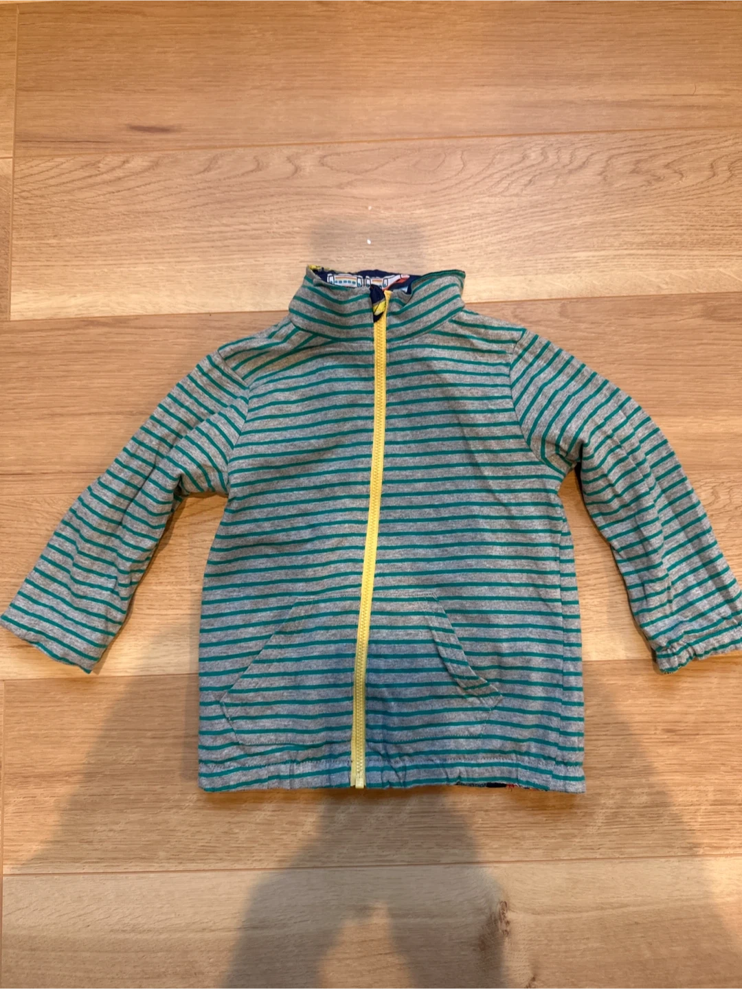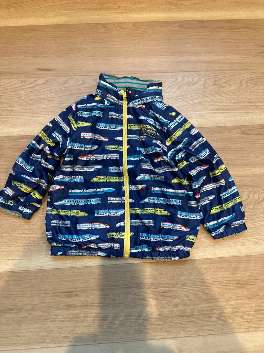 あたたかさmotherwaysのキッズの電車柄ジャケットです。 ・色:ネイビーベースにカラフルな電車柄 ・サイズ:97cm 中古品であることをご了承ください。
