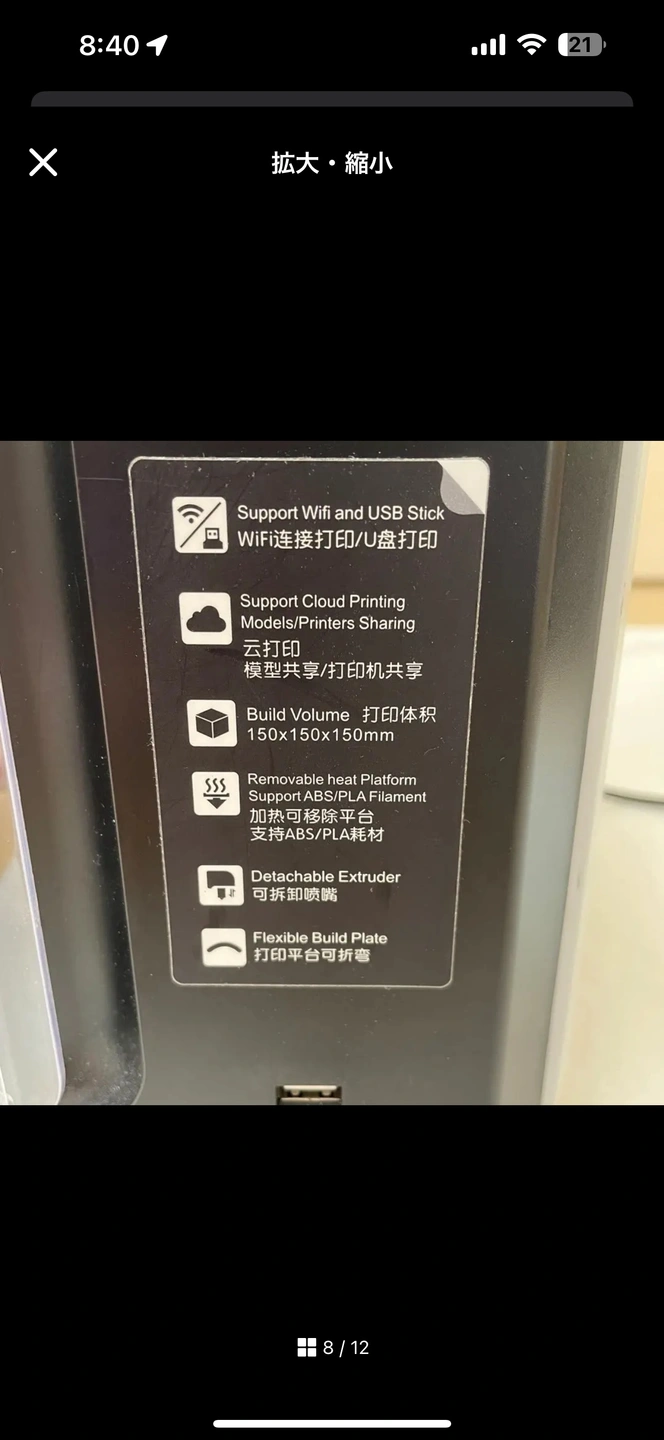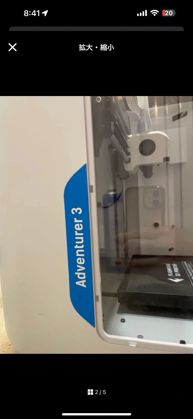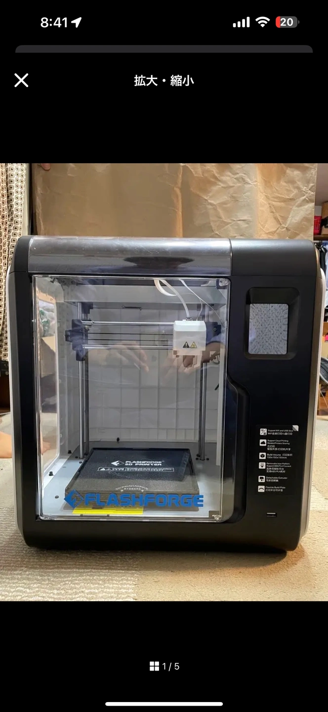 3Dプリンター Adventurer3(アドベンチャー 3) Adventurer3 ブランド:ー FLASHFORGE社のAdventurer3です。 引越しのため出品しました。 中古品をメルカリで購入し、300時間程使用しております。 正面扉に傷が付いております(画像参照) 発送前に工場出荷前状態にリセットしてお送りします。 あくまで中古品であることをご承知くださいませ。 内容品 ・本体 ・電源ケーブル ・フィラメント未使用1個と使用中の1個80パーセント残をつけます ご不明な点などお気軽にお問合せくださいませ。