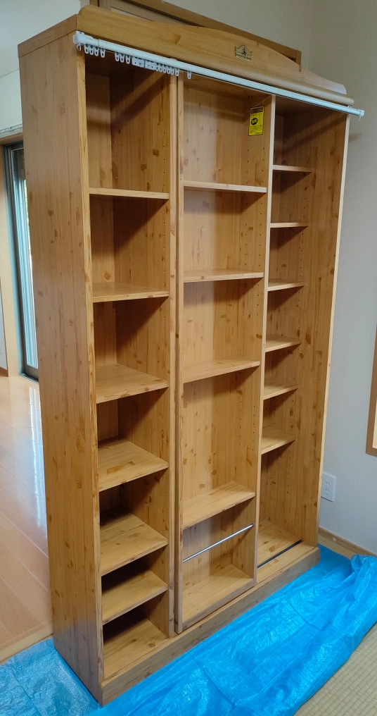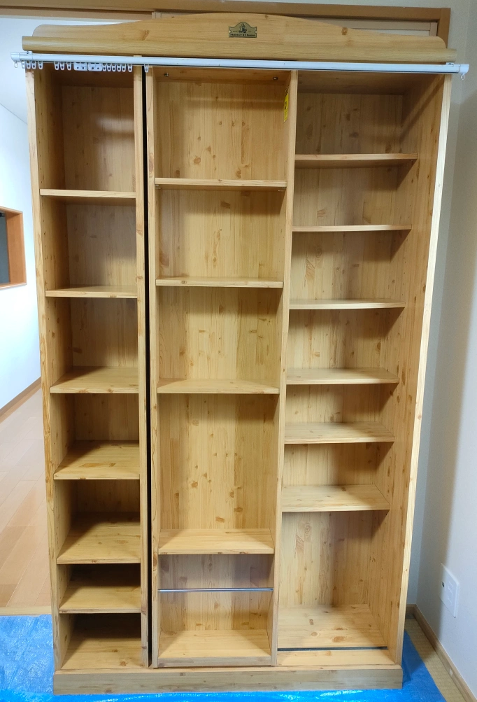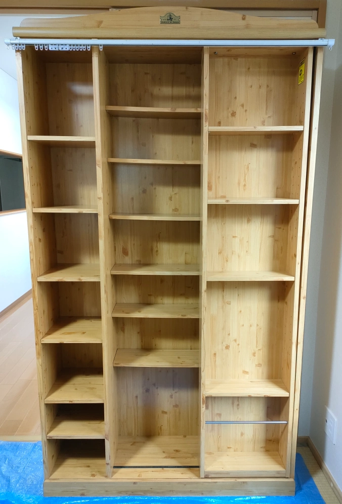✳️大型本棚 大容量本棚 スライド式 神奈川✳️ ⚠直接 運搬・運び出し・取りにいらっしゃるのが可能な方限定。⚠高さ,重量あります。 ・ブランド︰PRODUCT BY DAIMARU ・入手時期︰30年以上前 ・サイズ(素人採寸) 幅 105cm x高さ185cmx奥行き 31cm (本の日焼け防止用のカーテンレール付き) * 手前の棚は可動式(レール上を左右に移動) * ど真中の棚以外は棚の高さ調整可能 (ビス式/写真8,9枚目参照)。 ◇状態:良好 (可動部もスムーズ) 自宅で長年使用していた本棚のため経年劣化ありますが、大きなキズ、汚れ等無し。 棚板に若干歪み/たわみあり。 写真を良くご確認お願い致します(⁎ᴗ͈ˬᴗ͈⁎) 中古品である点 御理解頂ける方 ご検討をお願いします( ᵕᴗᵕ ) 【引き取り限定】 1階から外までの運び出し作業も必要です。 大きさ・重さあるため サイズを良くご確認お願いします。 運搬可能か車の大きさも御確認下さい。 ▪️場所:神奈川県相模原市中央区 (ケーズデンキ相模原店から車で10分程度) ▪️引取日時:要相談 喫煙者、ペットおりません。 特徴...棚板高さ調整可 主な素材...木