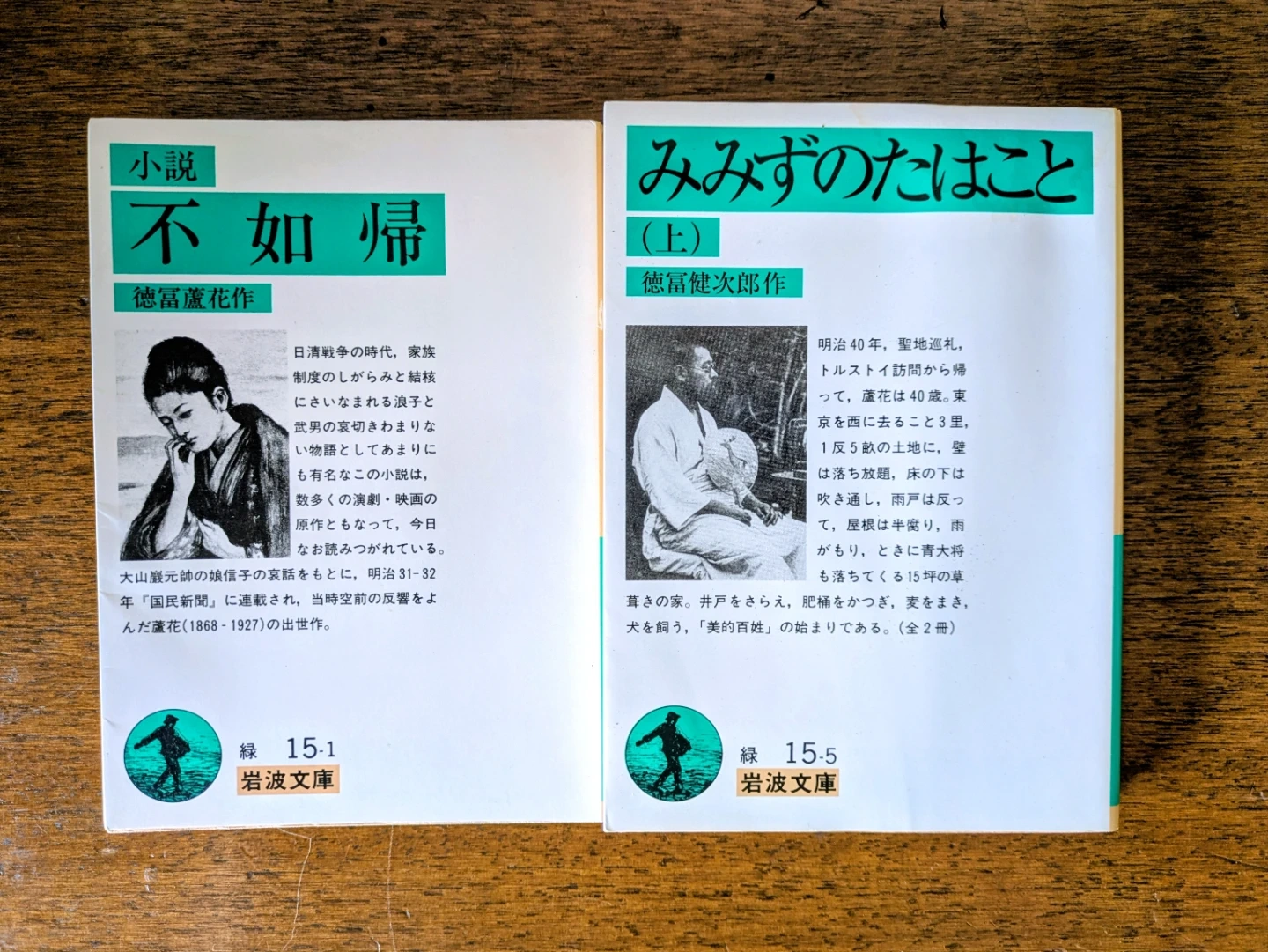 岩波文庫の徳富蘆花の著書2冊セットです。 ・「不如帰(上)」徳冨蘆花 作 ・「みみずのたはこと(上)」徳冨健次郎 作 ・定価:460円+税, 700円+税 ・使用感あり 中古品であることご了承ください