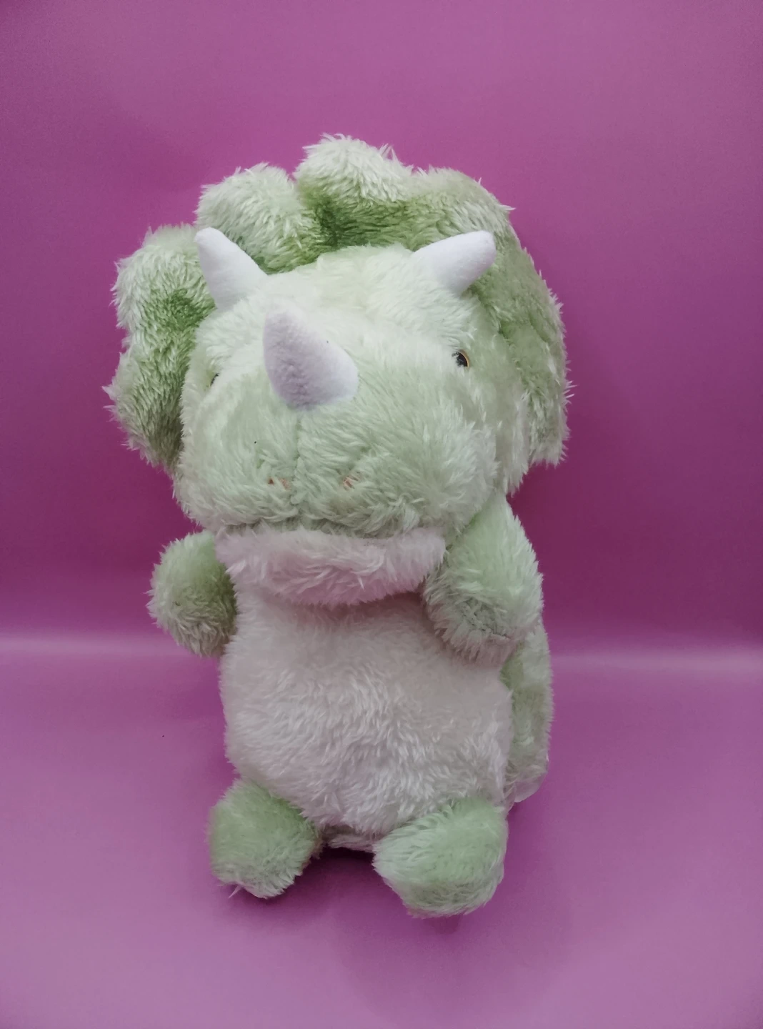 恐竜のぬいぐるみです ・色:緑、白 ・状態:使用感少なめ ぬいぐるみ500円+1.000円で、ぬいぐるみのなかにミニ録音機を縫い込めます。お母さんの声や、好きな音楽等を録音できます。20秒位の時間です。 ご希望であれば、地球のシャーマン共振の音源等録音することもできます。