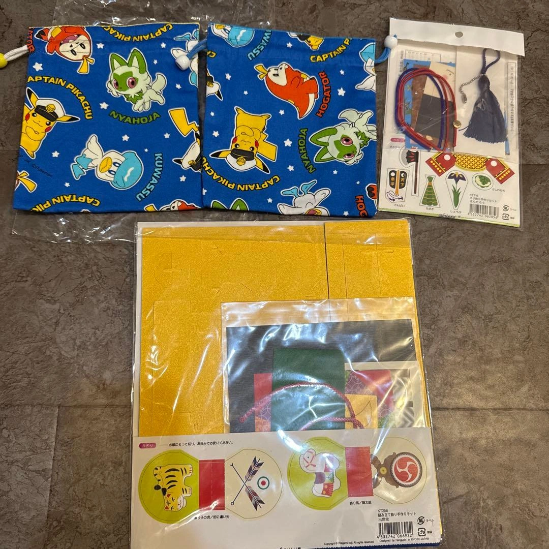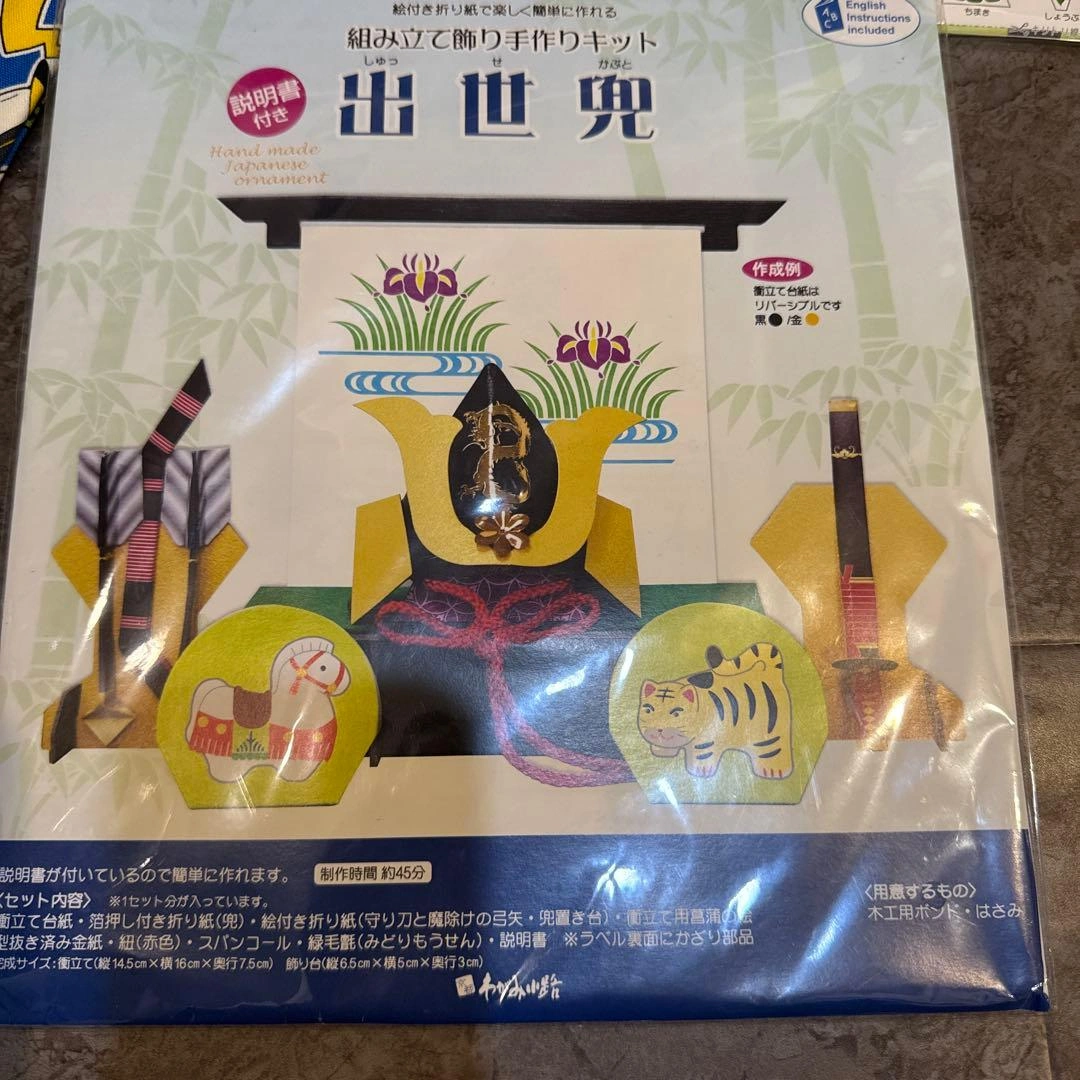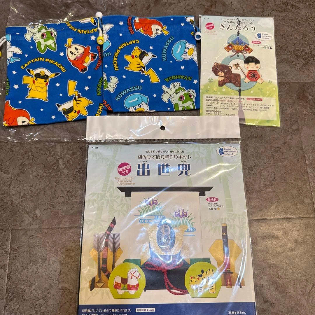 子供の日手作りセット2種類と手作りポケモンピカチュウの巾着袋2枚の4点セットです。 ○ポケモンピカチュウ巾着袋 2種類 入れる場所は約16センチ四方 平置きで縦約19センチ横約16センチ 素人採寸なので、誤差があるかもしれません。 中生地は青と黄色の2種類 ○手作りキット2種 親子で製作を楽しむことができます。 ●きんたろう 折り紙とちょっとした工作で手先を動かして脳を活性化! お子様からお年寄りまで楽しめる手作りキットです。 折るとモチーフになるように絵柄が印刷された折り紙が付いています。 2連のリースなのでお好みで上下を変えたり、貼る位置を変えたりすることで、 表現豊かな吊り飾りができます。 作り方説明書はイラスト入りでわかりやすくなっています。 また、英語バージョンも入っているので、外国の方にも楽しんでいただけます。 【商品仕様】 寸法:包装 253x138mm、リース本体 110×110mm 60×60mm 内容:リース、部品(1セット分)、説明 材質:リース 紙、折紙 和紙、紐 レーヨン、スパンコール PET、ボールチェーン スチール 個装:OPP袋入り 備考:製作時間 約40分 英語の説明書付き ●出世兜 組み立て式台紙で土台を作り、絵付き折り紙を折って、立体的に飾れる手作りキット。 季節のインテリアとして、玄関やお部屋のなどに好きなように配置をして飾れます。 お子さまからお年寄りまで楽しむことのできるキットです 【商品仕様】 品番:KT256 寸法:個装 315×247mm、完成サイズ 145×160×75mm 内容:衝立用台紙、毛氈、折り紙 3枚、その他部品(1セット)、説明書 材質:紙、ポリエステル(毛氈)、レーヨン(紐)、PET(スパンコール) 個装:OPP袋入り 備考:製作時間 約60分 英語の説明書付き 【用意するもの】 ・はさみ・のり・工作用ボンド・えんぴつ 自宅保管が気になる方はご遠慮ください