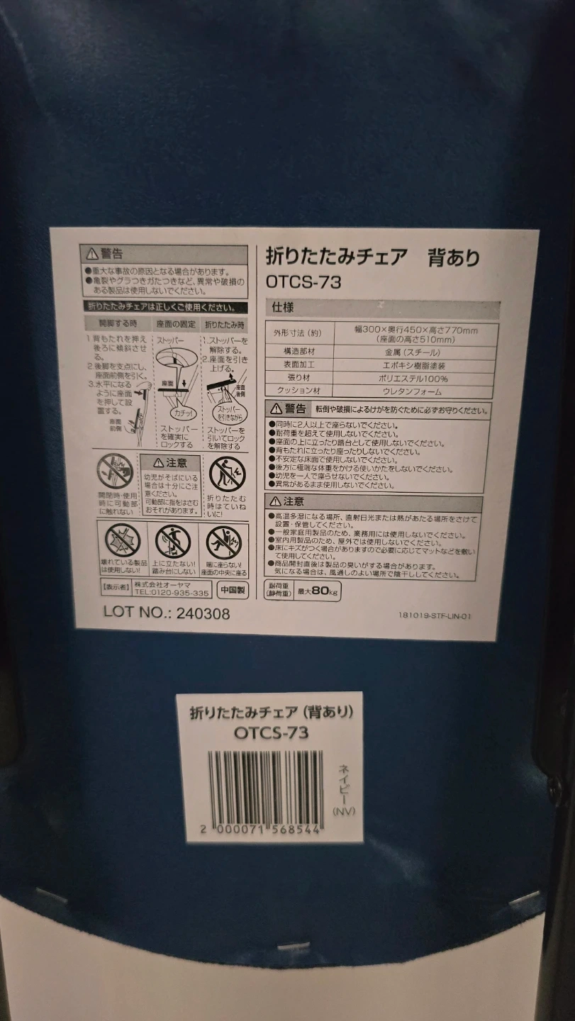 あたたかさ折りたたみチェア背もたれ付きです。 【情報】 型番:OTCS-73 【状態】 使用感は少なめです。 ご不明点があればお気軽にお尋ねください。