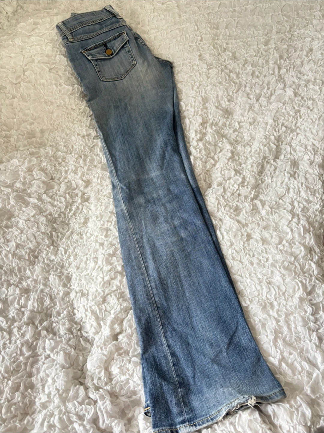 20年ぐらい前にユニクロで販売されていた画像のブーツカットのデニムパンツをダメ元で探しています。画像のもの若しくはGLAMORUSコラボ商品のもの。 ウエスト22(56cm)か販売されていたか不明ですが、あれば21のもの。 裾上げしていないもの。(フルレングスで股下約76〜78cmぐらい) 多少の色褪せと裾のスレや解れ等のダメージ、ポケット外側部分的なダメージは気にしません。 極端な汚れやシミがないもの。なぜかペンキ汚れは気にならないのでOK。 本体の穴(膝やお尻)や極端な生地のダメージ、ベルトループの切れ(スレはOK)などのダメージは気にします。 ネイビーなどのブルー系を探しておりますが ブラック系の色でも大丈夫です。 まだお持ちのかた、手放すことをお考えのかた、コンディション次第ですが格安でお譲り頂けないでしょうか?