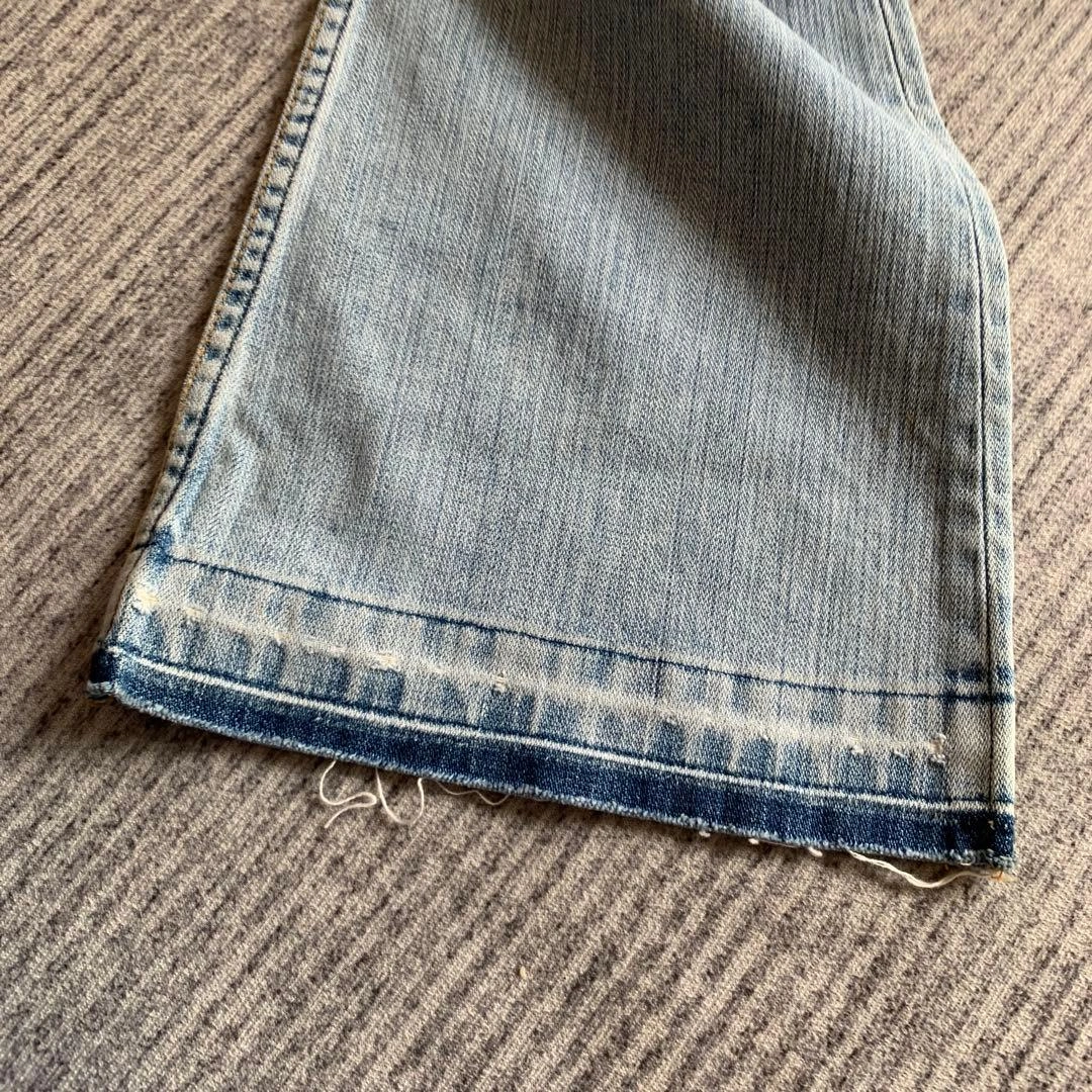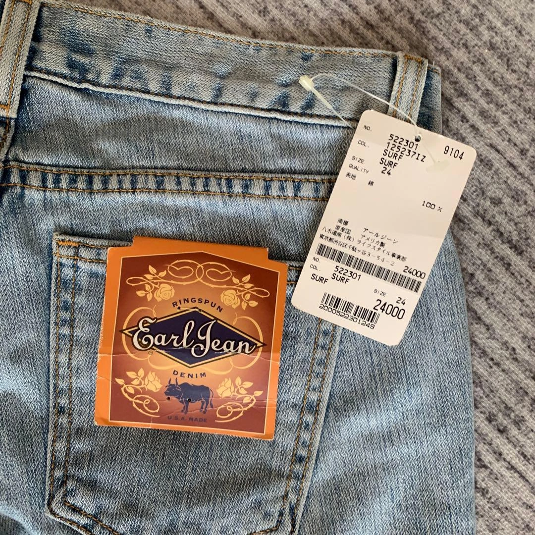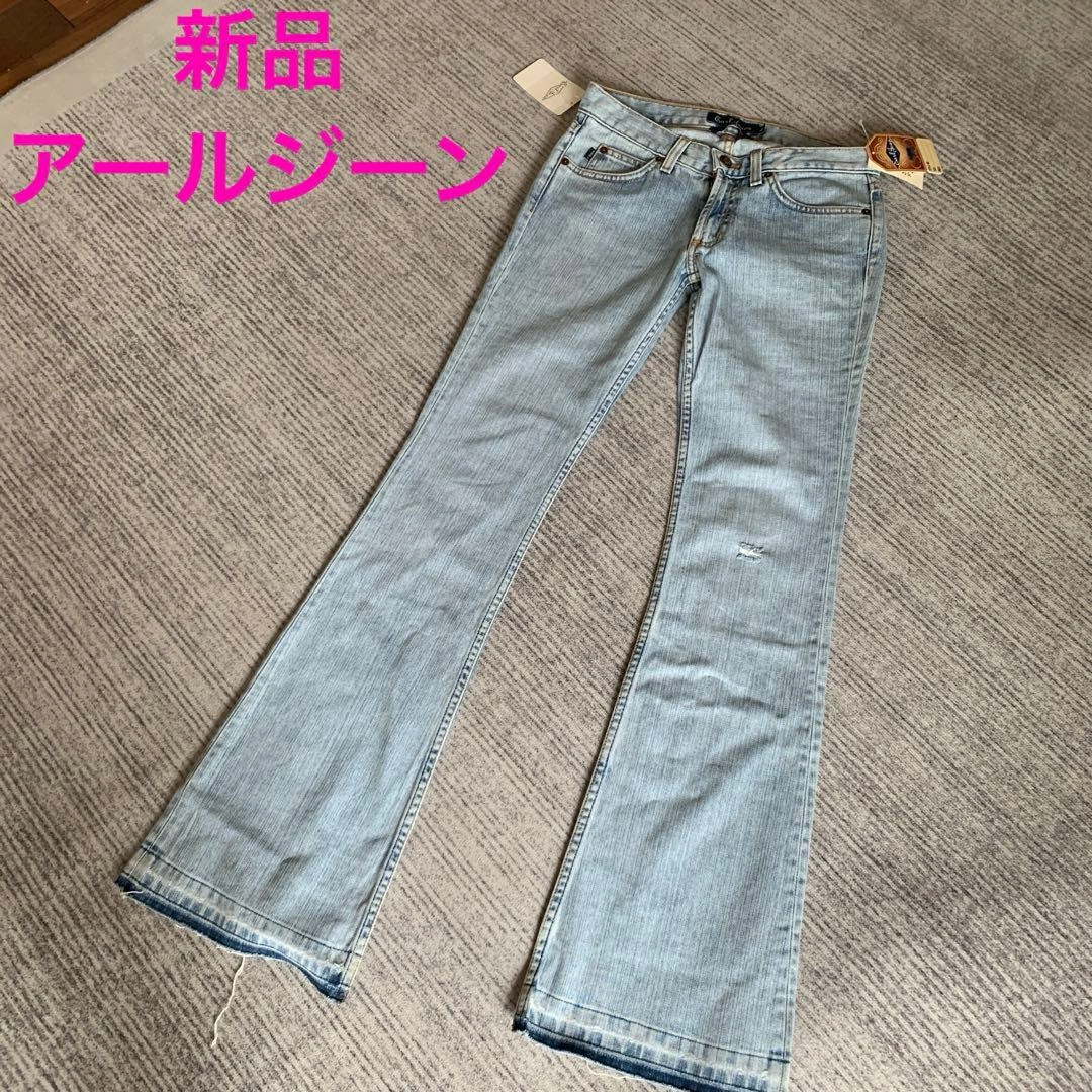 アールジーンのライトブルーのブーツカットデニムです。 - スタイル: ブーツカット - カラー: ライトブルー - 素材: デニム サイズ24 ウエスト平置きで大体36センチくらいです。股下81 新品タグ付き定価24000円 ご希望の方はお気軽にご連絡ください。