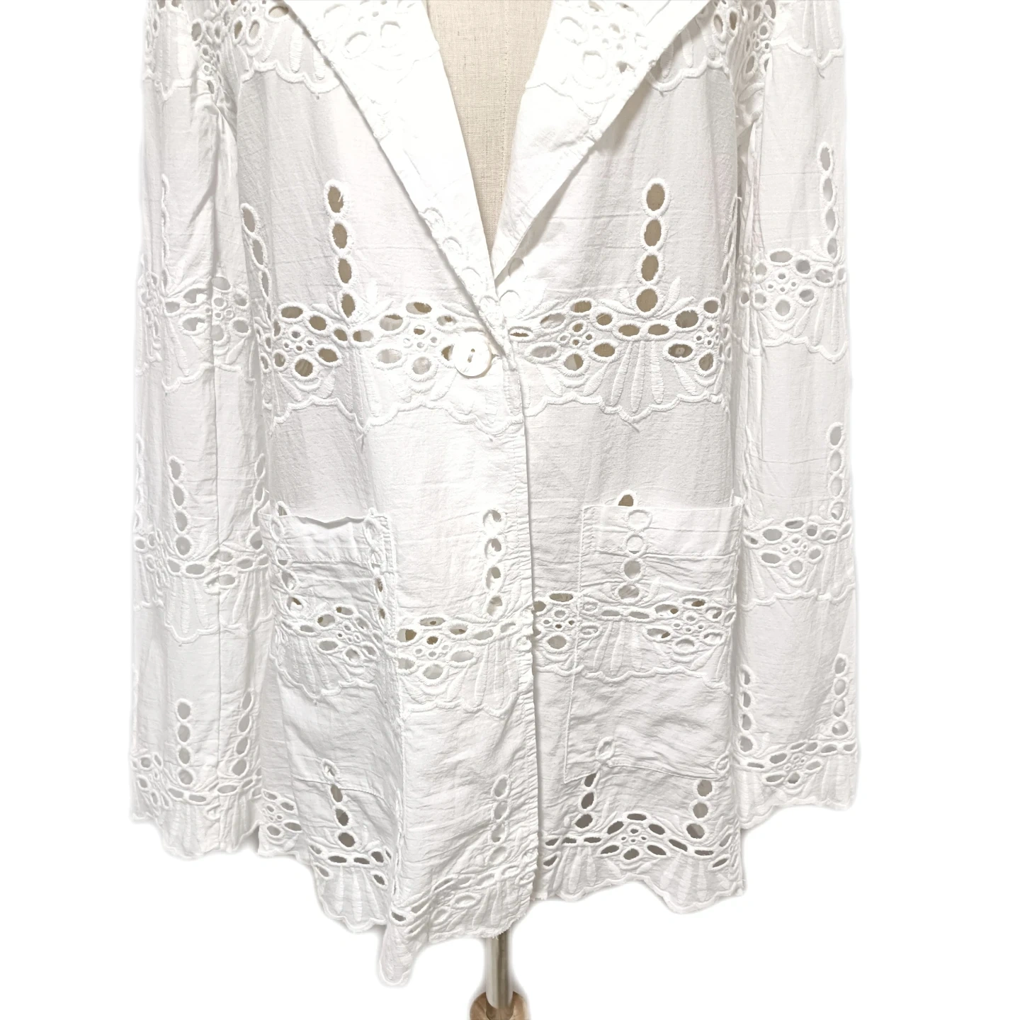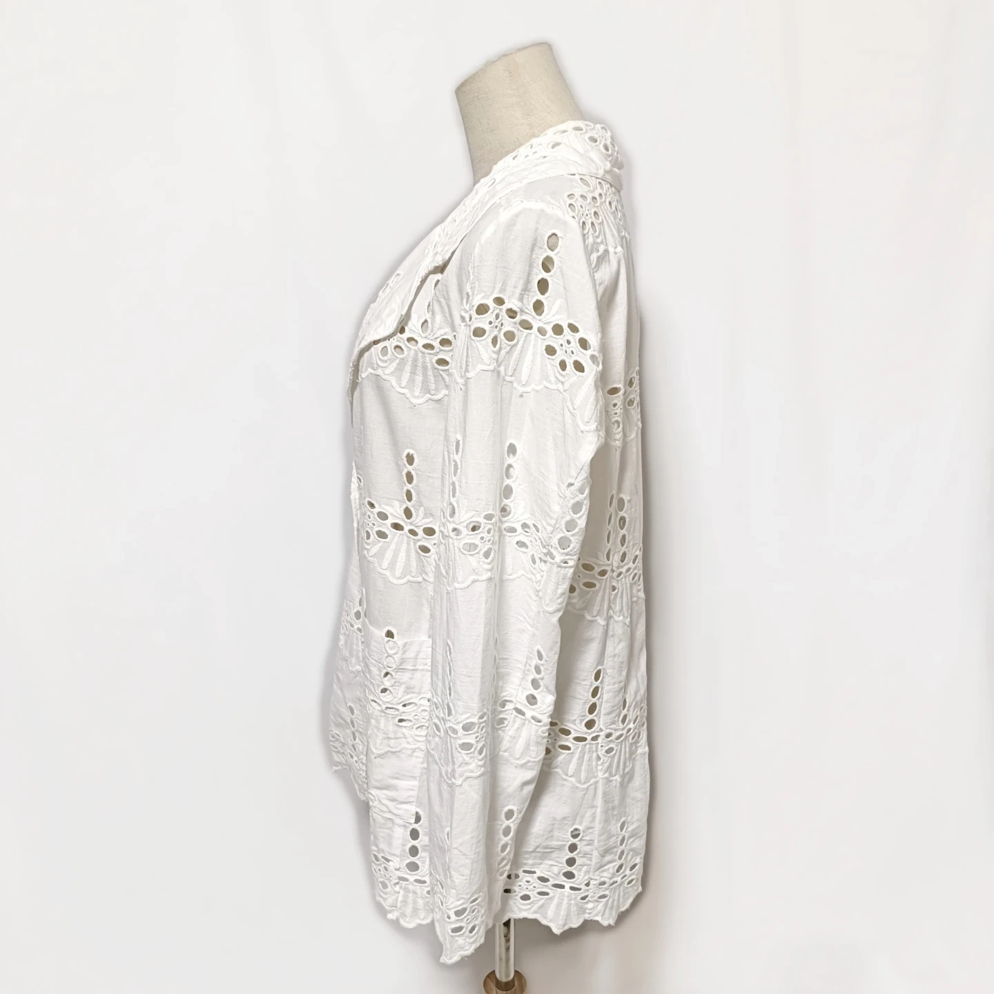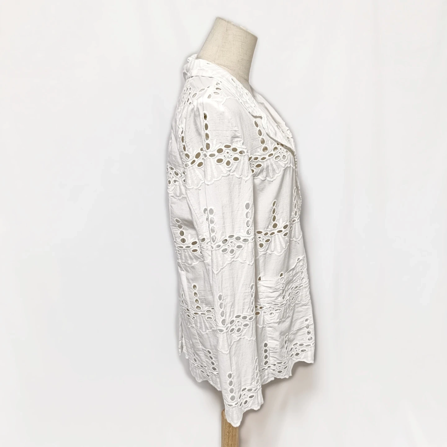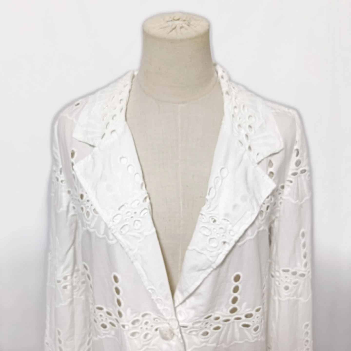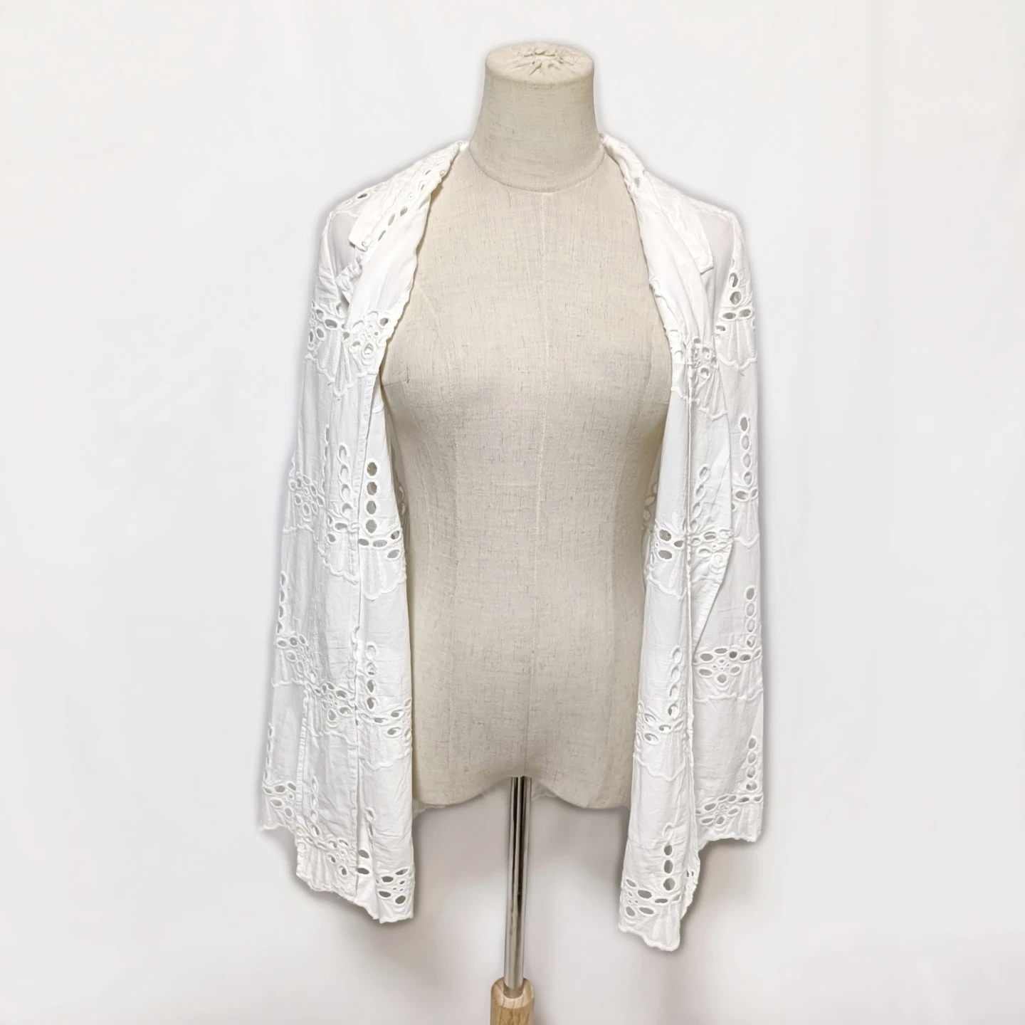 ご覧いただきありがとうございます! URBAN RESEARCH Sonny Label(サニーレーベル)の素敵なコットンレースジャケットです。 全面に施された華やかな**シフリー刺繍(コットンレース)**が、軽やかで上品な印象を与えてくれます。 Fサイズ(フリーサイズ)で、リラックス感がありながらも、レースの透け感が女性らしい抜け感を演出します。 □商品名□ 新品タグ付 サニーレーベル 綿麻 コットンレースジャケット 白 Fサイズ □ブランド□ SONNYLABEL URBAN RESEARCH アーバンリサーチサニーレーベル □表記サイズ□ F (フリーサイズ) □実寸サイズ(cm) □ 着丈:72 肩幅:38 身幅:50 袖丈:62 ※実寸につきまして多少の誤差はご了承ください。 ※表記サイズだけではなく実寸のサイズをご確認ください。 □カラー□ ホワイト □素材□ 基布:綿 91% レーヨン 9% 刺繍糸:綿 100% □コンディション□ タグ付き、未使用品です。 目立った汚れやダメージなど特にございません。 ※汚れはできる限り写真にて掲載しております。まずは画像をご確認ください。 どうぞよろしくお願い致します。 □商品管理番号□ T1-W-5614