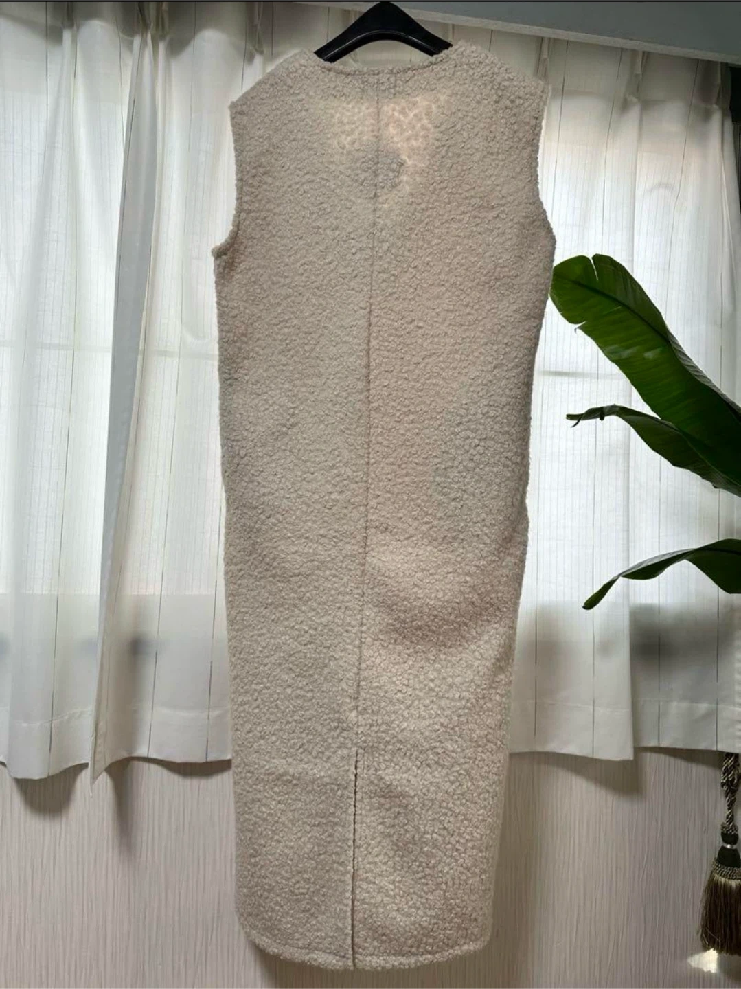 アイボリーのボア風ノースリーブロングワンピース。 カワイイ&着心地の良さで、 黒と2色大人買いしましたが、 普段パンツスタイルなので 出番なく出品します、、 冬はタートルネック、春はロンTなど ベーシックなデザインで着回しが楽しめます。 日常使いから、オフィスカジュアル、 女子会やデートなど幅広い場面で活躍します。 生地はプードルのようなボア生地で 触り心地も良く、ぬいぐるみのよう。 ミルクティーのような柔らかなカラーで 優しい印象を与えます。 3シーズン、幅広い場面に対応するので、 コスパの良いワンピースだと思います。 色違いで黒も出品中! - 色: アイボリー - デザイン: Vネック、ノースリーブ - 素材: ボア風生地、伸縮性あり - スタイル: ルーズフィット - 特徴: テクスチャーのある生地 ★☆お互いが気持ちの良いお取引をするために☆★ 商品で気になる箇所がある場合は購入前に質問にてご確認ください。 当方、『禁煙・ペットなし・自宅保管』ですが、USEDに関しては以前の利用状況等はわかりません。 ご覧いただきありがとうございます。