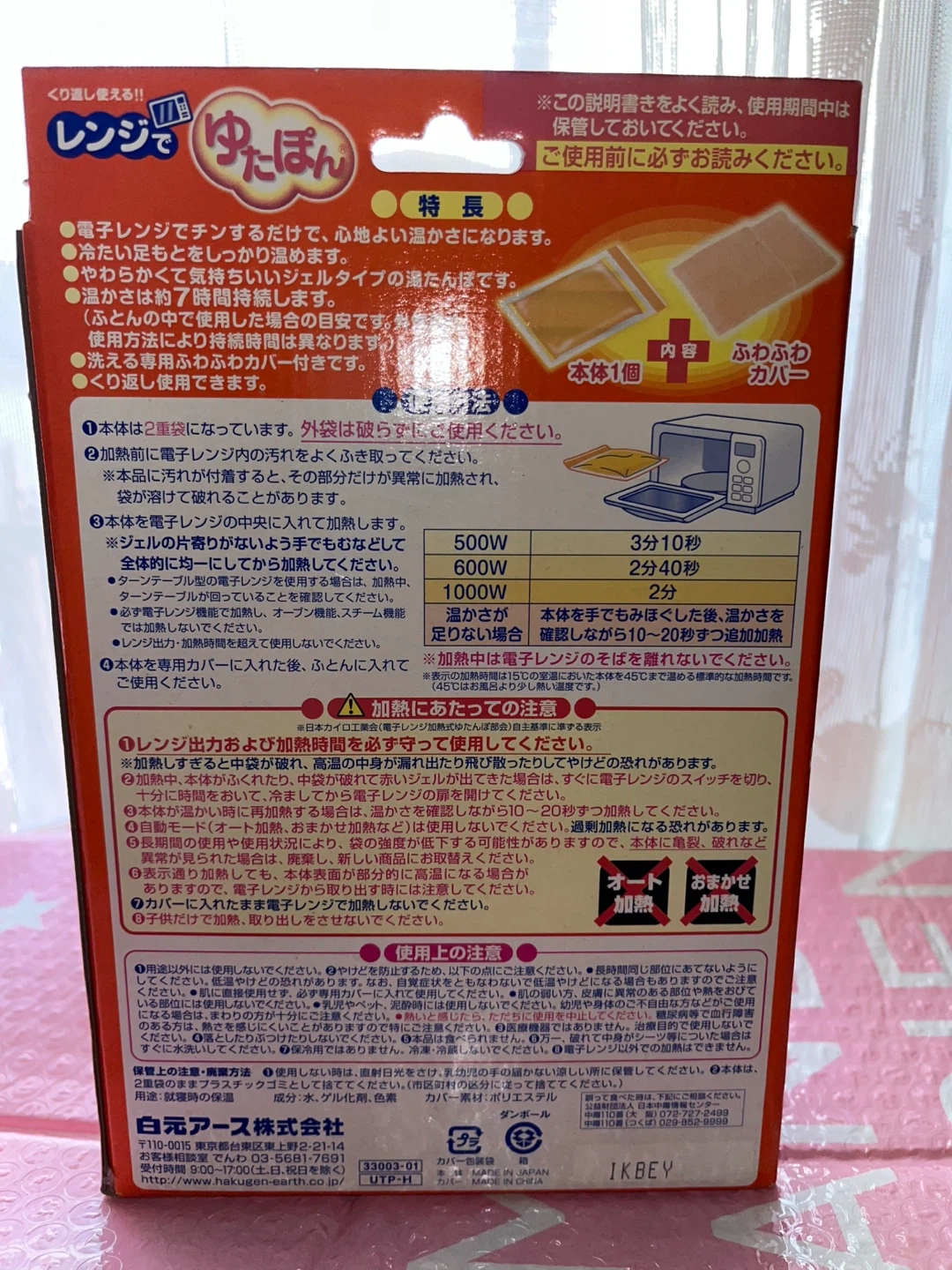 【新品】レンジ ゆたぽん ゆたんぽタイプです。 電子レンジでチンするだけで心地よい温かさになる、ジェルタイプの湯たんぽです。寒い季節の快適睡眠をサポート。ふわふわ素材の洗える専用カバー付き。 ・繰り返し使える ・レンジで温める ・足元あったか ・温かさ7時間 複数購入したので余ってしまいました。 新品・未使用品ですが自宅保管品である事をご理解ください。