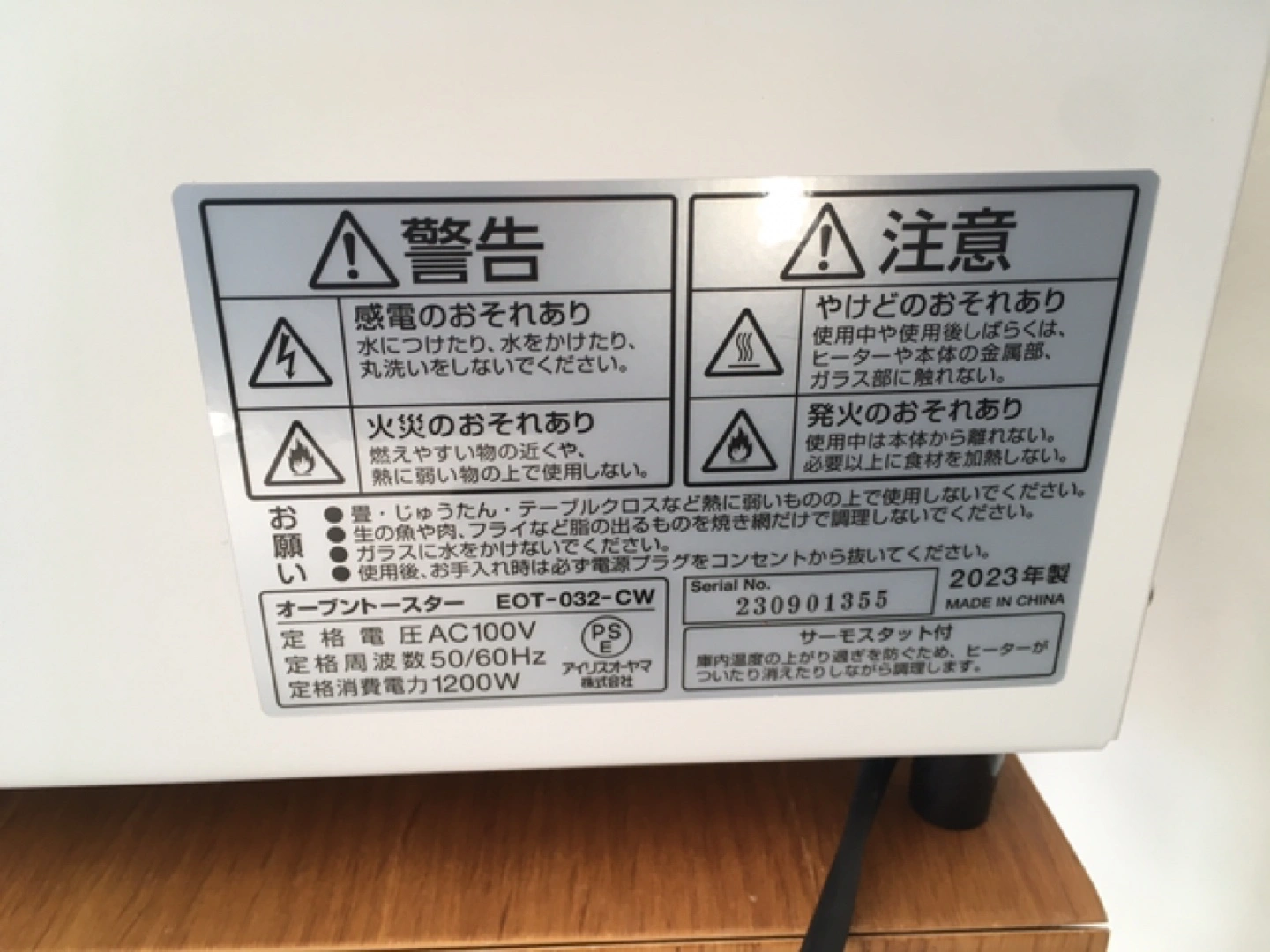 IRIS OHYAMA オーブントースター EOT-032-CWです。 新品ですが、訳ありなので下記参照下さい。 ・前面に1ヶ所小さな凹みがある。 ・足が1ヶ所へこんでいるので浮いている。(3足で安定するので、がたつきはしない。) ・動作確認しているので、一度電源を入れている。 ・ 取説有りません。(ネットからダウンロード出来ます。) 2023年製です。 ネットで8,000円程度で販売されてます。 4枚焼きです。 現物見て頂いて判断頂いて問題御座いません。 自宅迄取りに来てくれる方、宜しくお願いします。