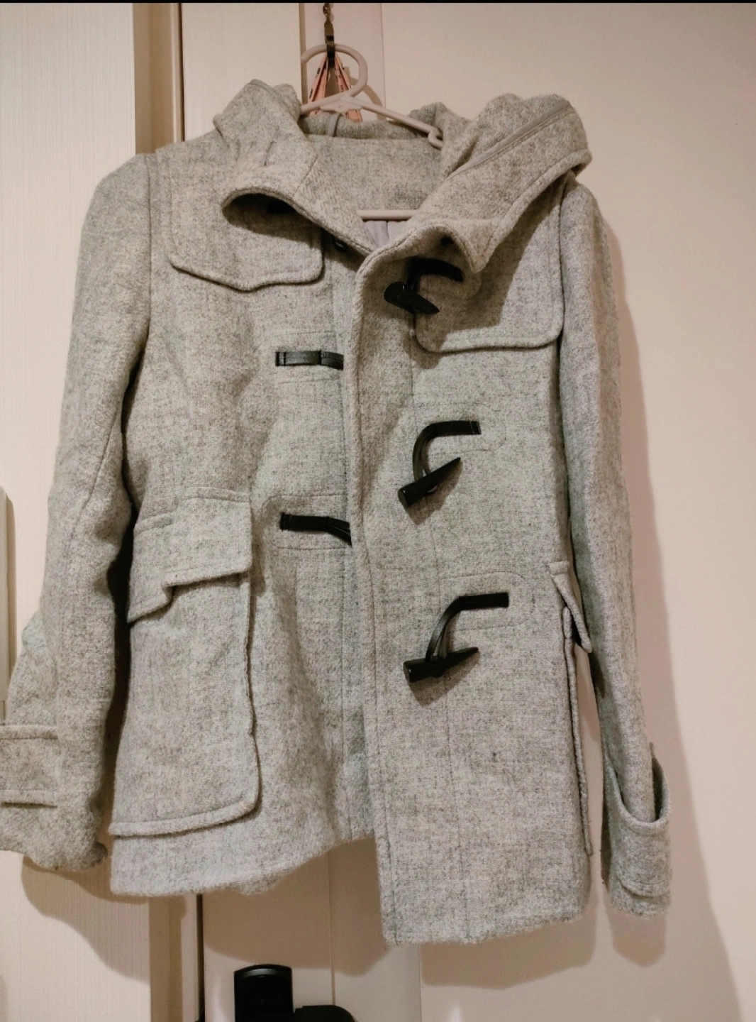 両ポケットあり、ウール素材薄手コート