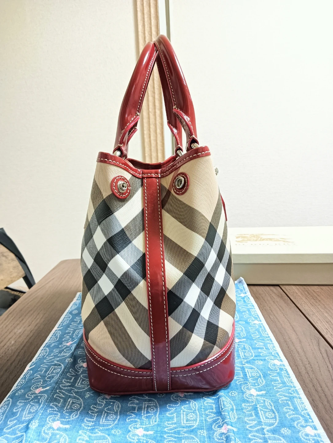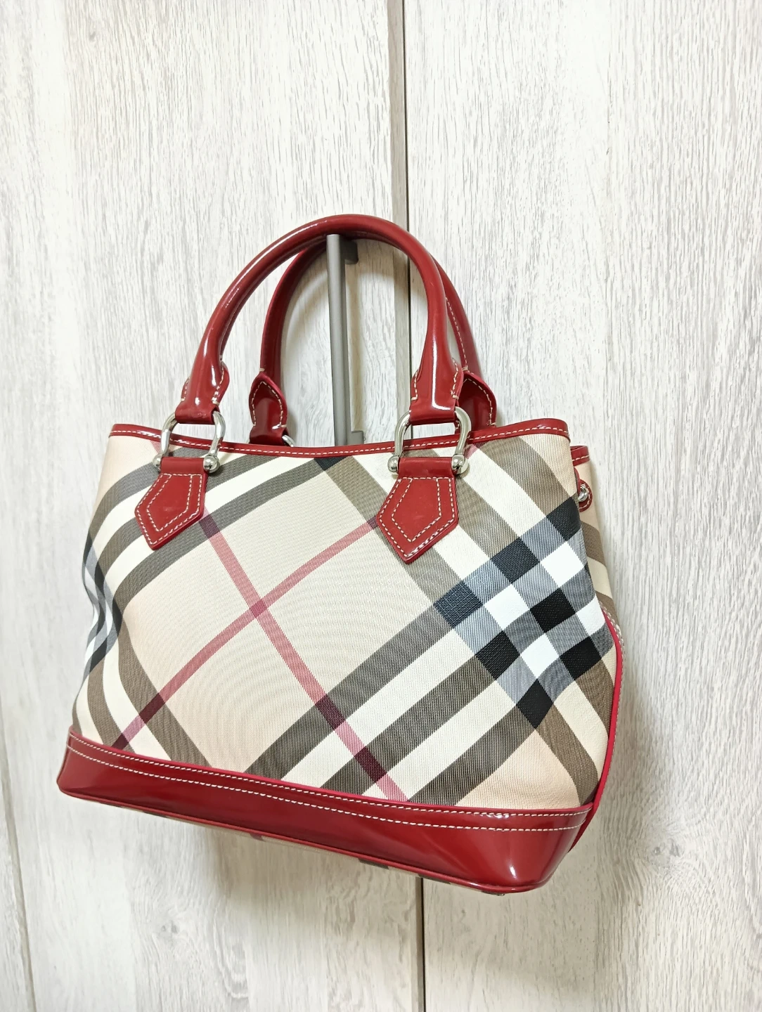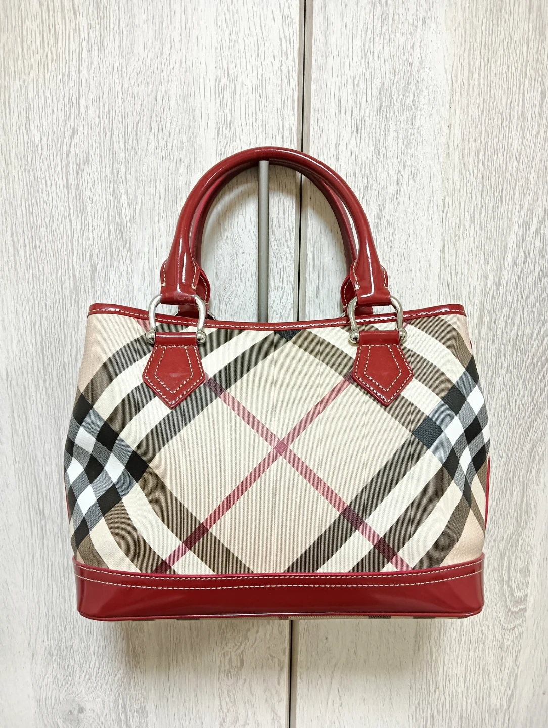 ★★ 他にもバ ーバリーの未使用近いレザーバッグも出品。 BURBERRY バーバリー ノヴァチェック柄 新品同様未使用品。 ハンドバッグ PVC&エナメルレザー素材 ★★ バーバリーの人気なノヴァチェック柄のハンドバッグで、サイズ感も良いハンドバッグです。 ★★ 写真の通り未使用状態で非常に綺麗ですが、自宅保管品となりますのでご容赦願います。 size 約30cmx23㎝ マチ約15㎝ color ノヴァチェック こちらは現物のみとなります。