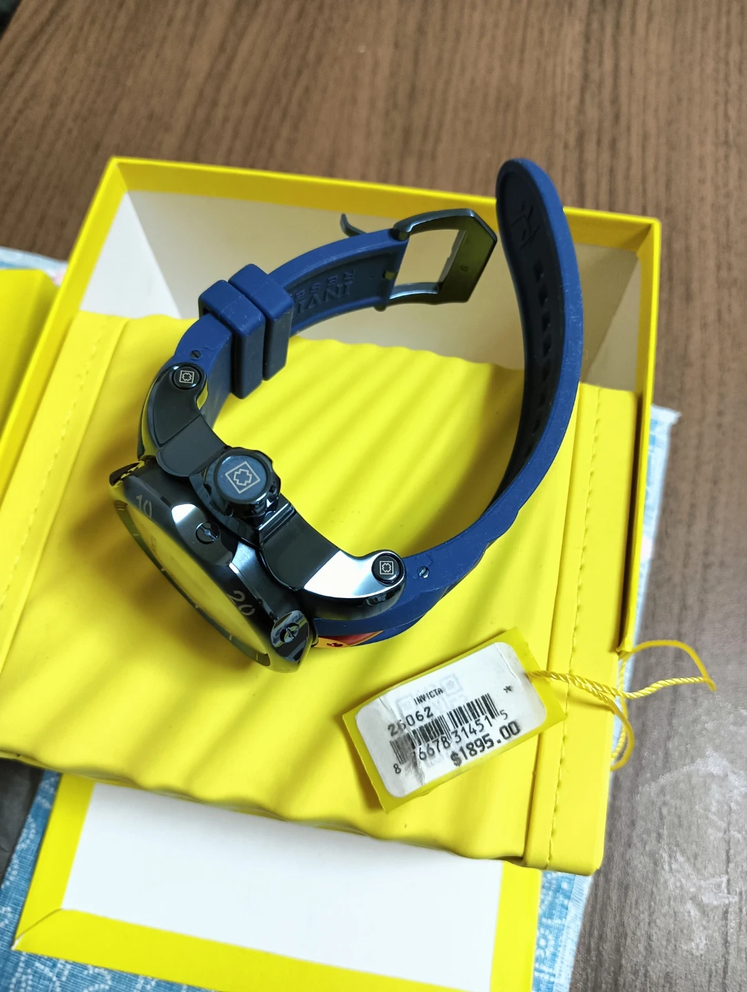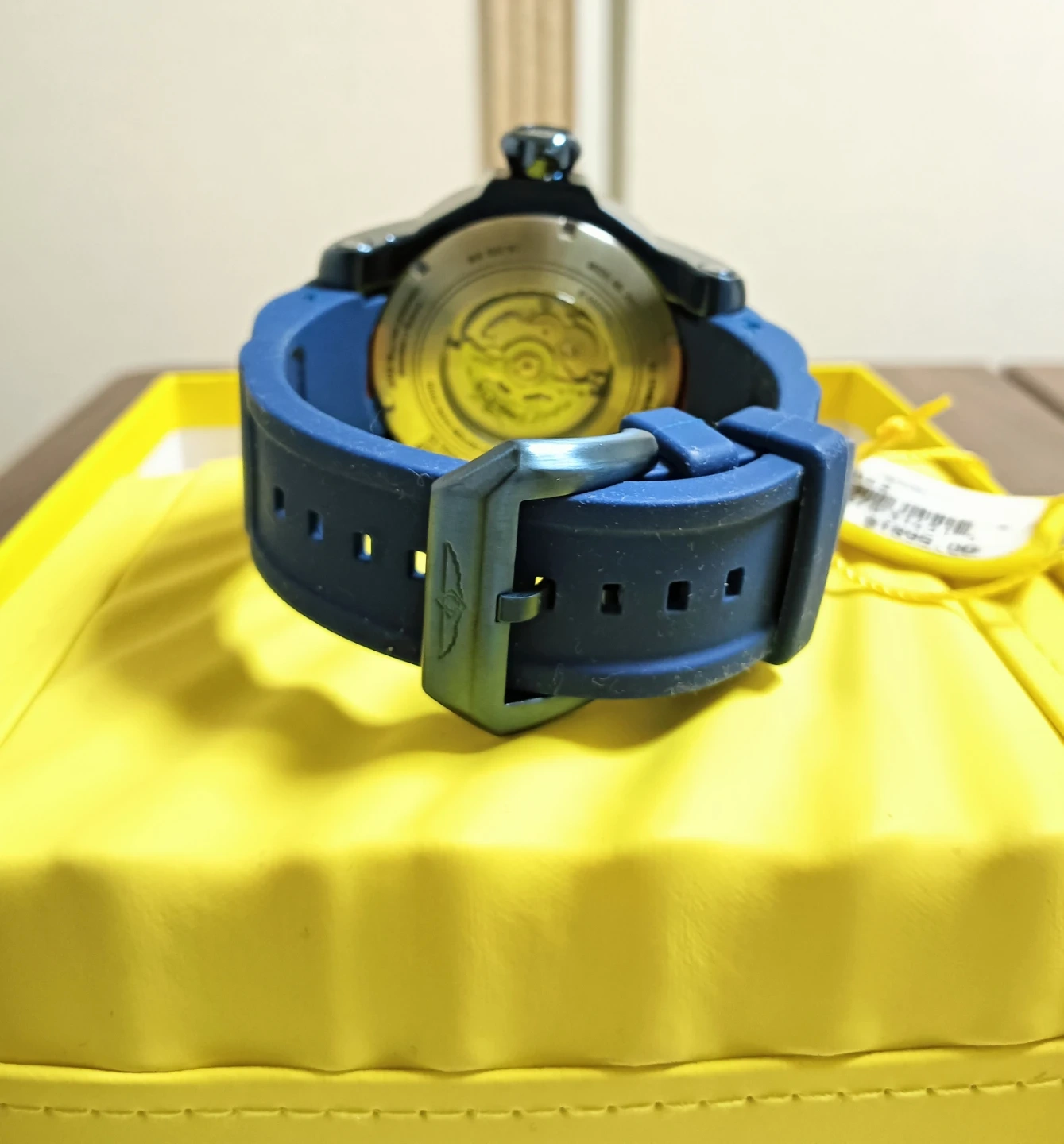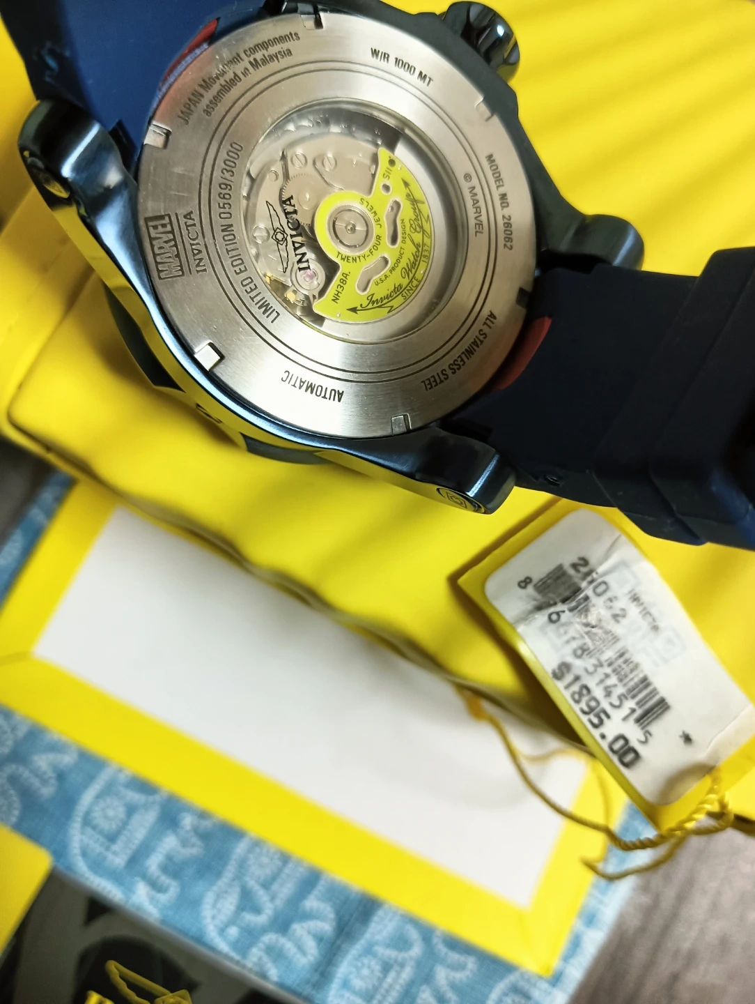 ★★ INVICTA インビクタ マー ベラス キャプテンアメリカ スディープロジャー ベノム 自動巻き オープンハート 裏スケルトン 腕時計 購入価格約 75.000円 正確作動 日差±約10秒 購入時の付属品全部付き。 ★★ インビクタの限定品の時計ですね。 本格的な自動巻き裏スケルトンの キャプテンアメリカシリーズです。 ★★ こちらも新品同様未使用品の為、当然非常に綺麗な状態です。 腕周り フリー color シルバー&ブルー 購入時の付属品全部付き。 正規箱、ケース、ギャランティ、冊子、クロス、購入時のタグ付き。 ★★ 52mmのスケルトンダイヤルを持つINVICTAの自動巻き時計、キャプテンアメリカモデル。 - ブランド: INVICTA - モデル名: 52mm Marvel Captain America Steve Rogers Venom Automatic Watch - 色: 青/赤 - 特徴: 自動巻き, スケルトンダイヤル - 付属品: 保証書, 箱, クリーニングクロス