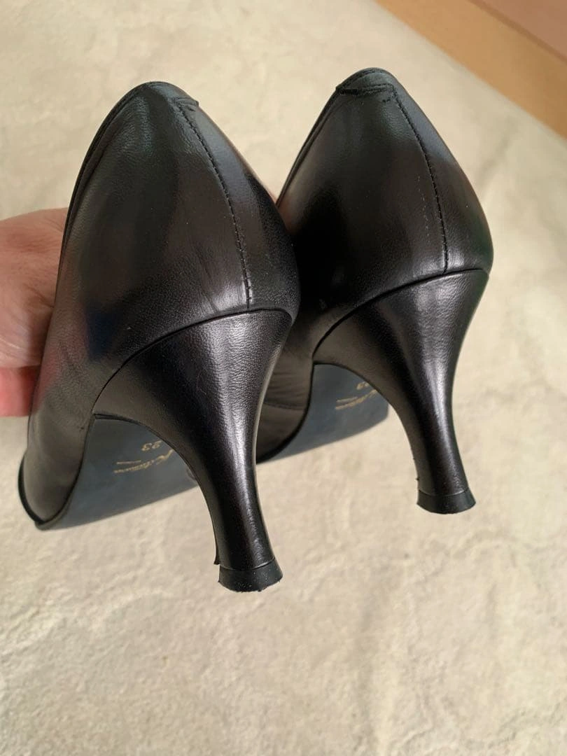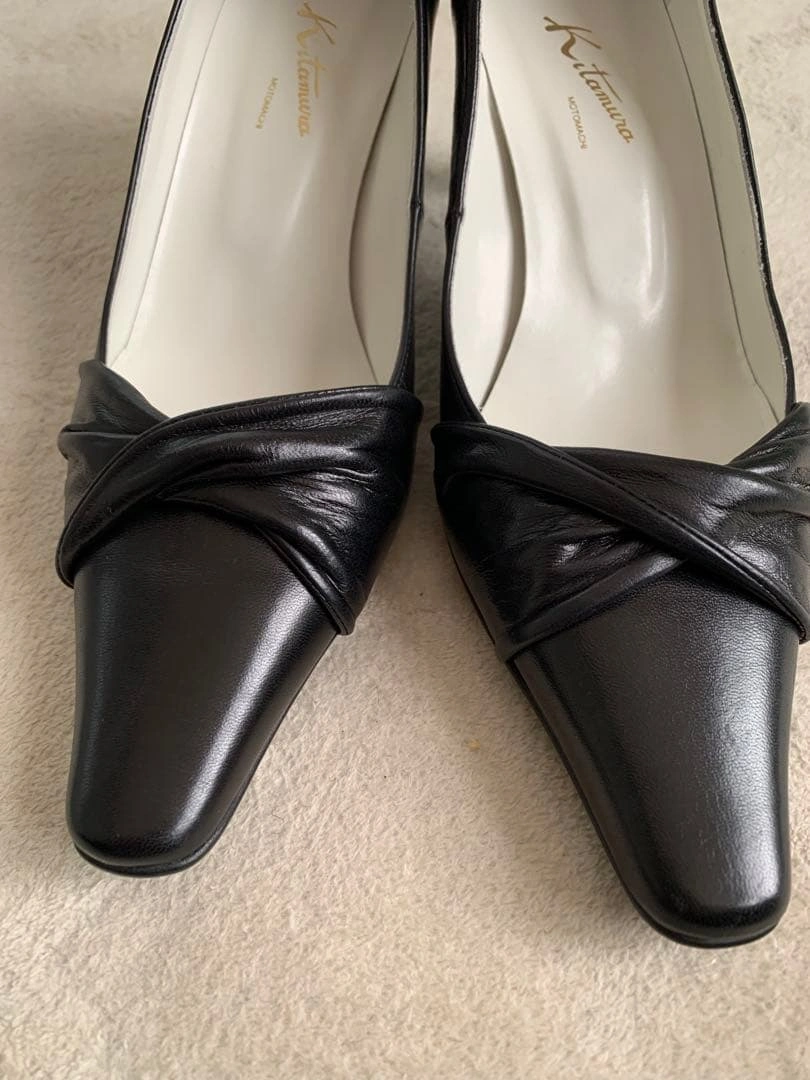 限りなく未使用に近いお品です。 ヒール高さは6.5センチで、安定感があり、足がきれいに見えます。 上質なレザーを使った素敵なパンプスだと思います。 ご希望の方はお気軽にご連絡ください。