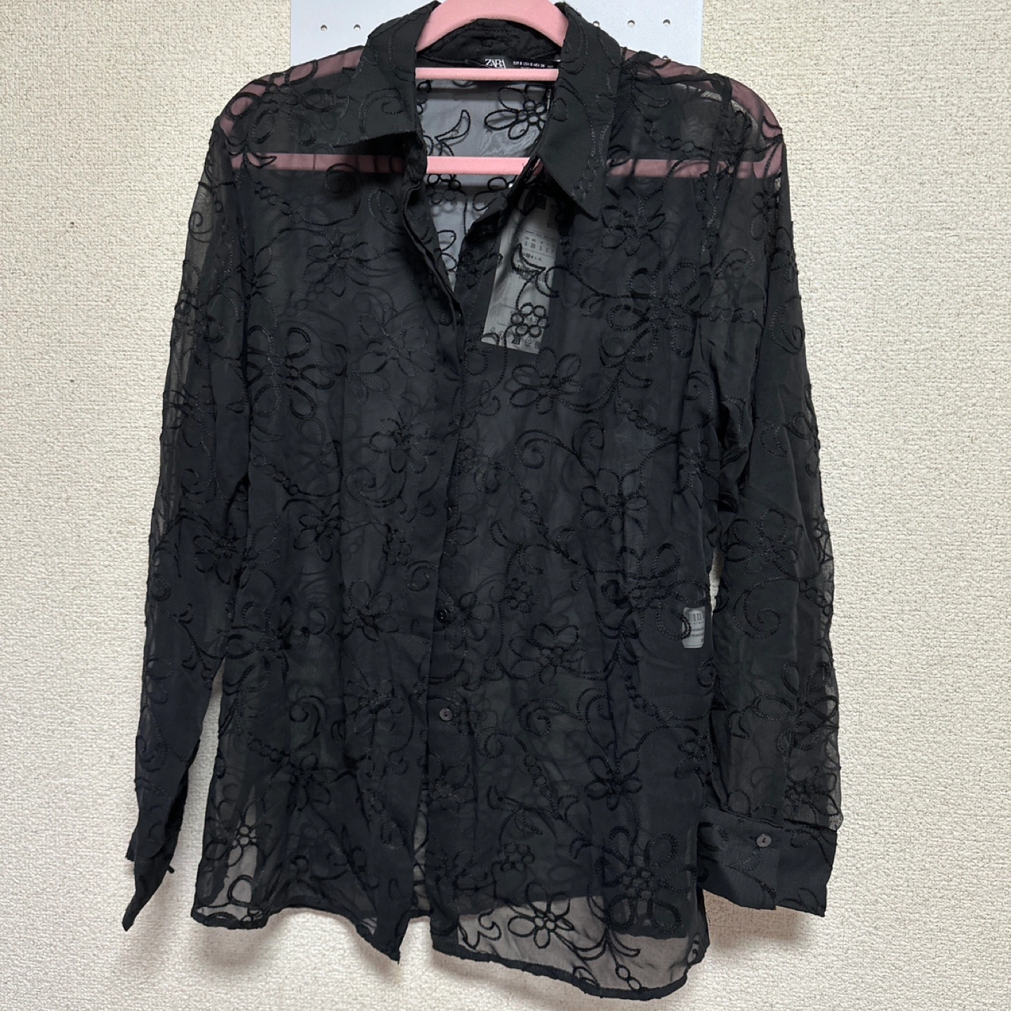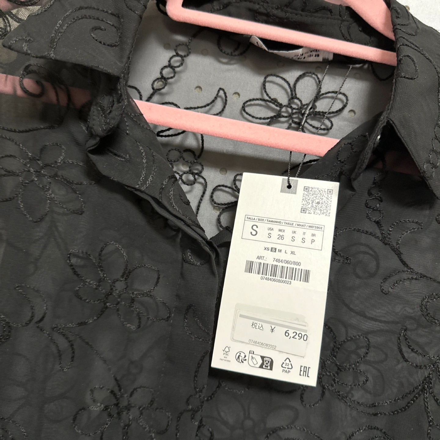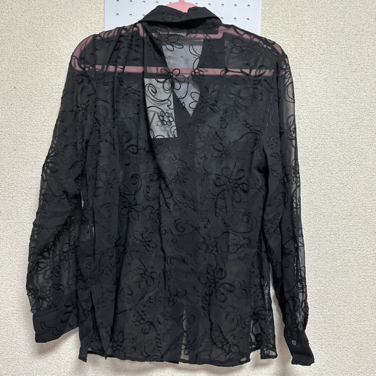 ドット柄フリルブラウス 新品未使用 タグ付き 黒 長袖